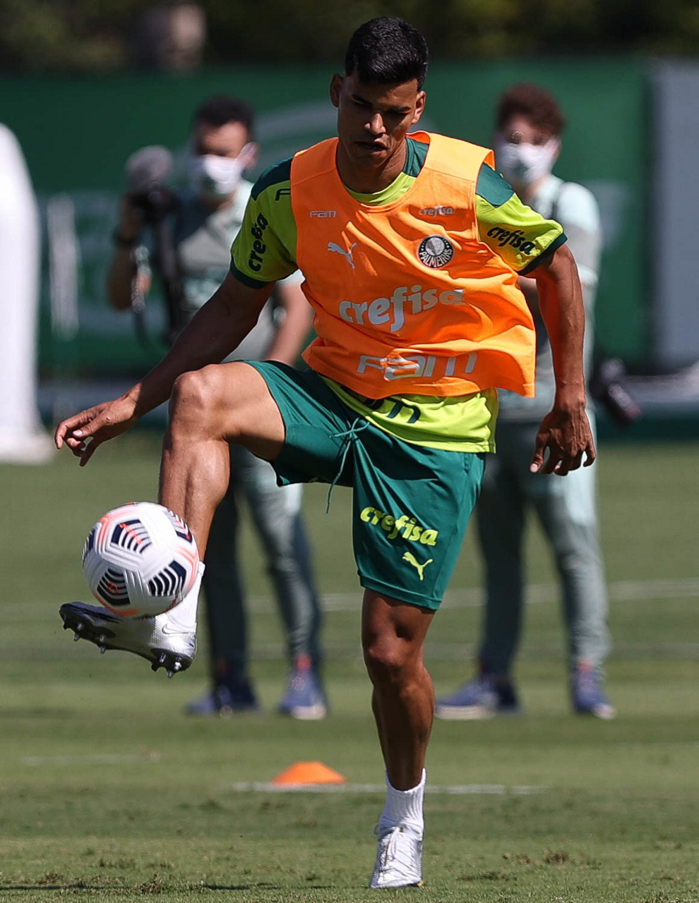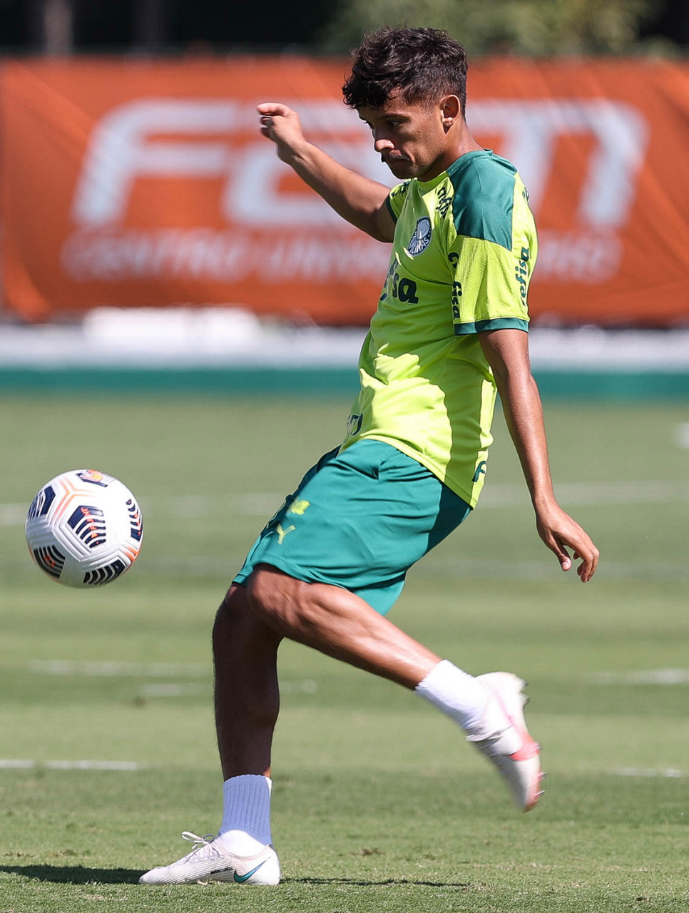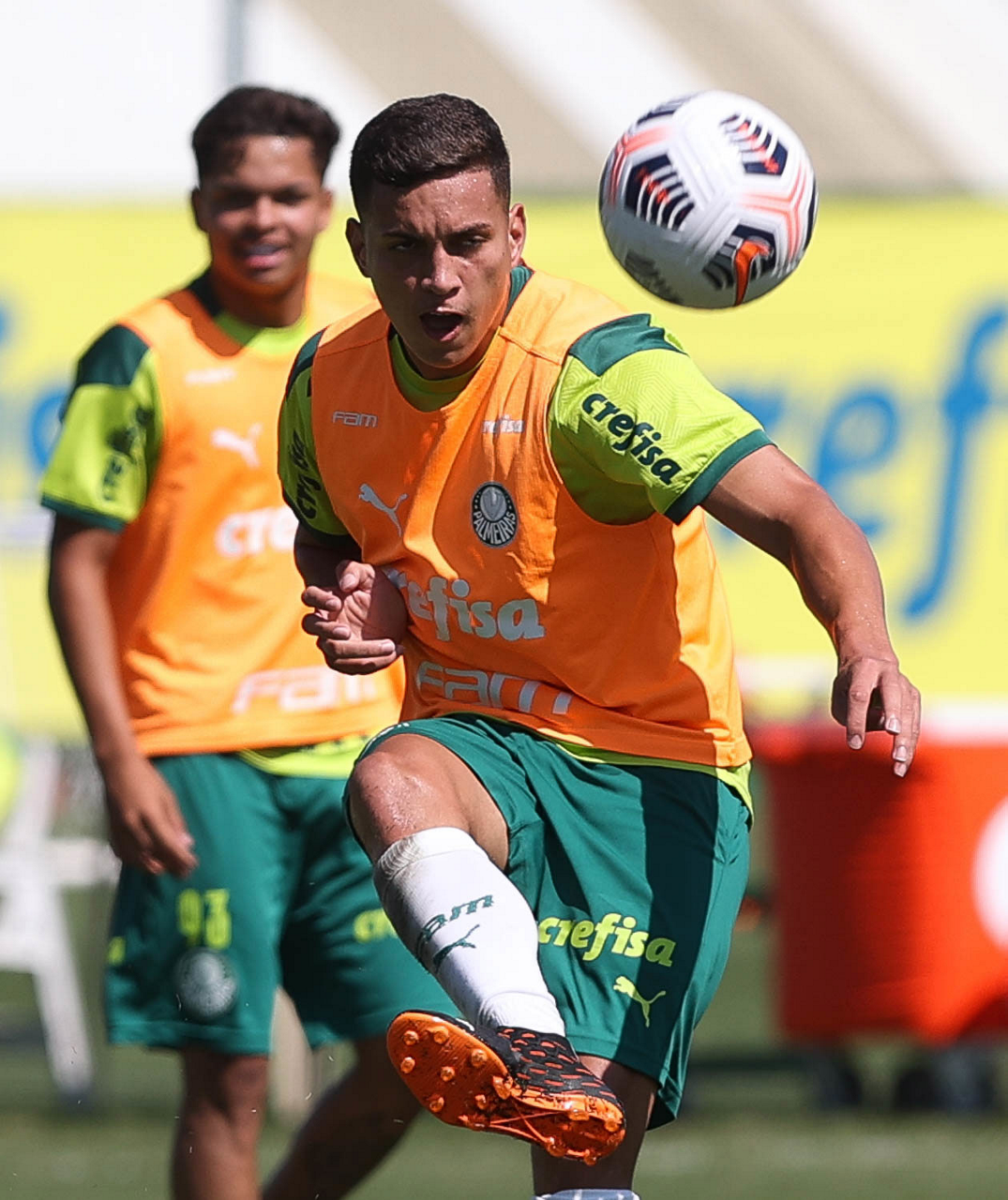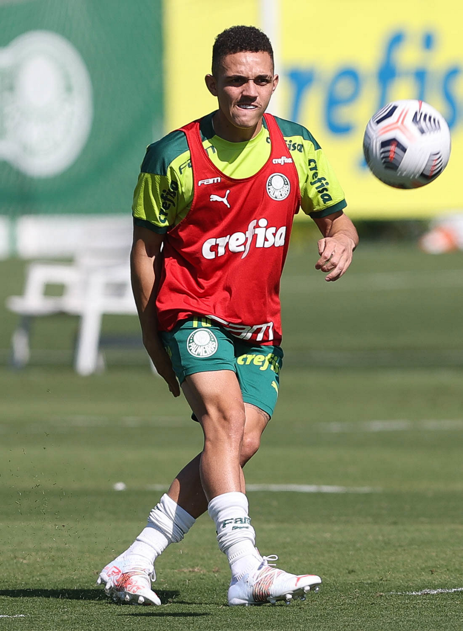 O jogador Raphael Veiga, da SE Palmeiras, durante treinamento, na Academia de Futebol. (Foto: Cesar Greco)