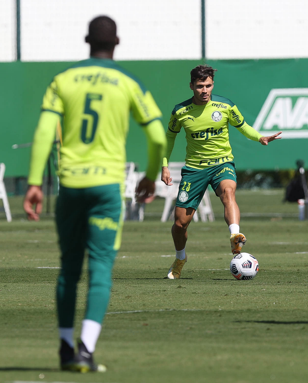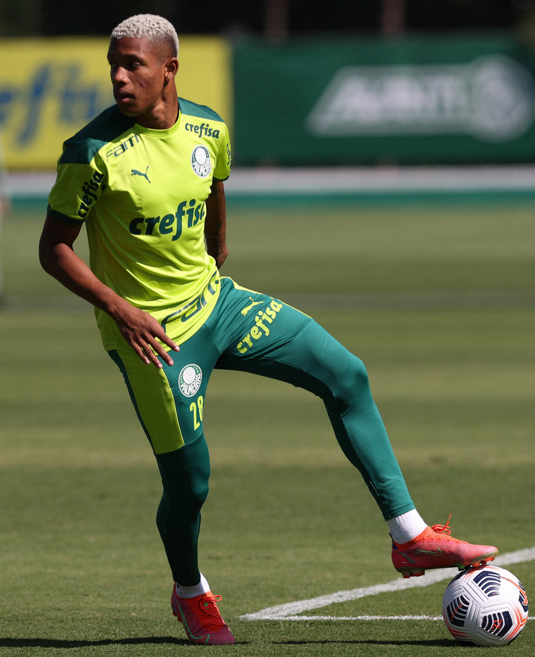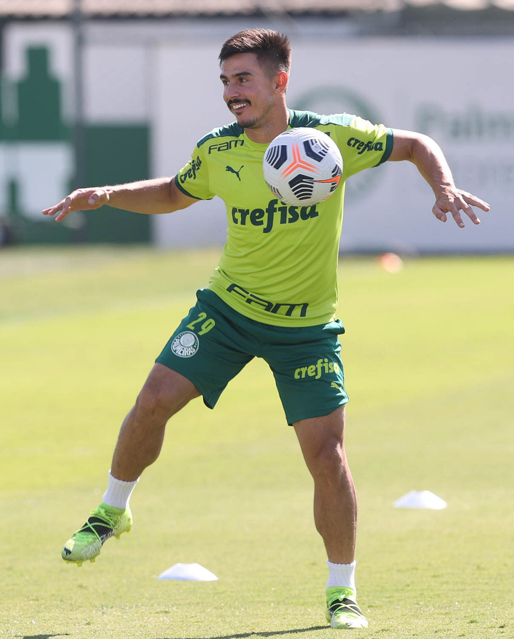 O jogador Raphael Veiga, da SE Palmeiras, durante treinamento, na Academia de Futebol. (Foto: Cesar Greco)