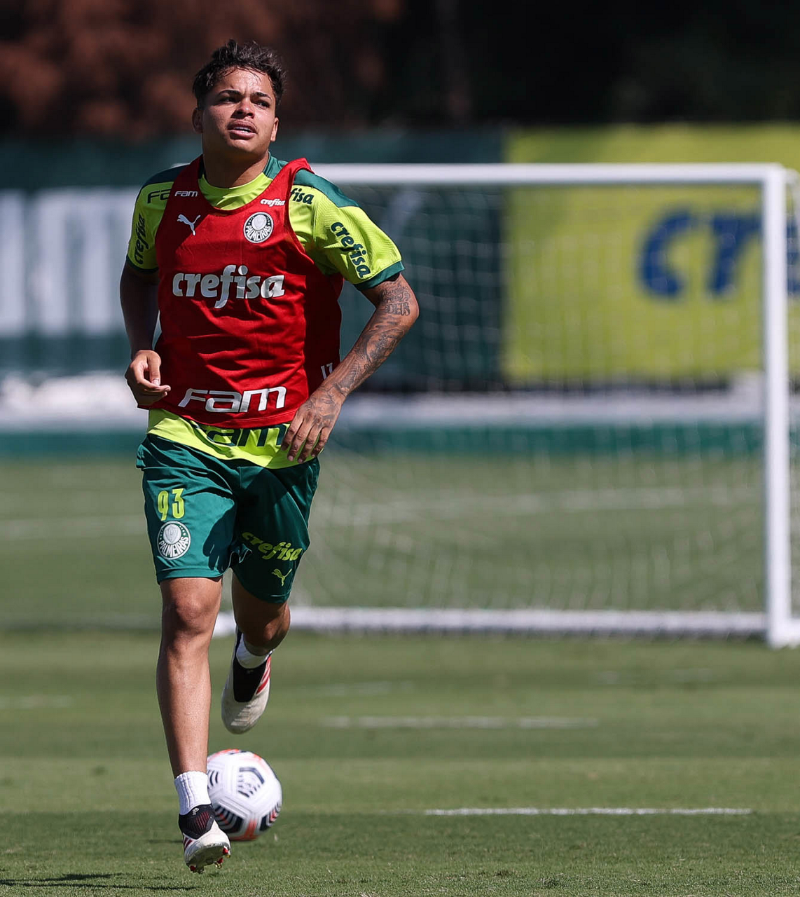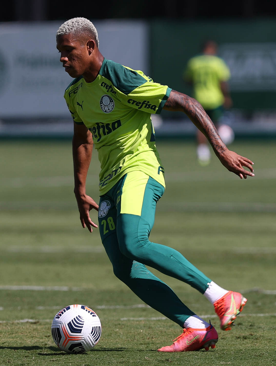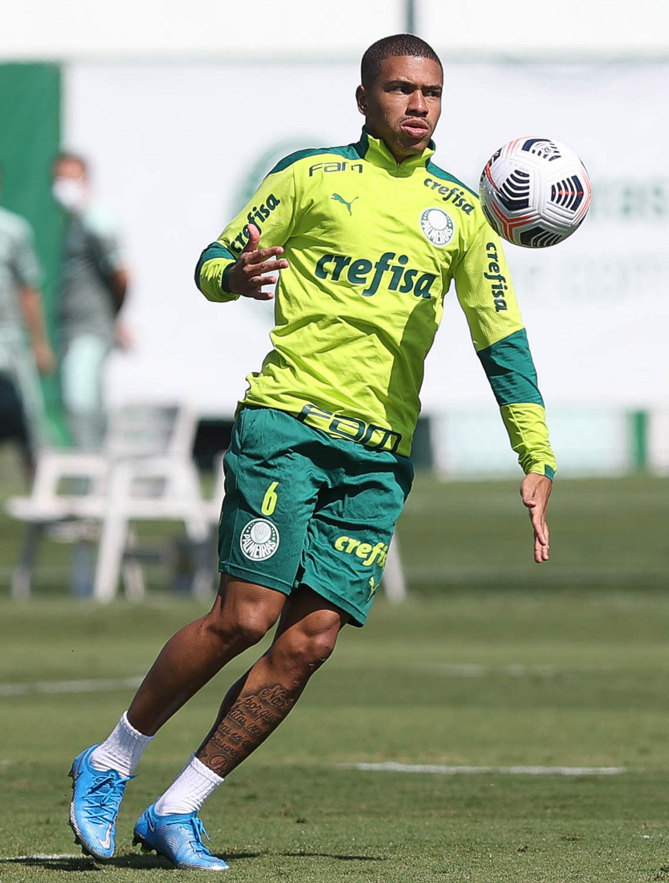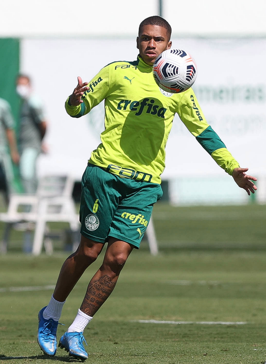 O jogador Raphael Veiga, da SE Palmeiras, durante treinamento, na Academia de Futebol. (Foto: Cesar Greco)
