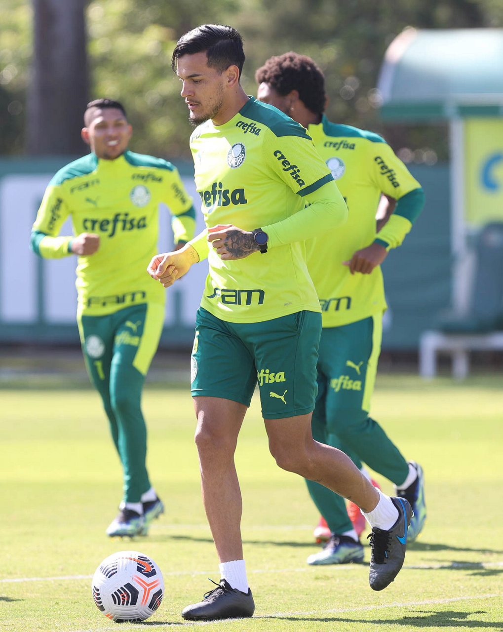 O jogador Gustavo Gómez, da SE Palmeiras, durante treinamento, na Academia de Futebol. (Foto: Cesar Greco)