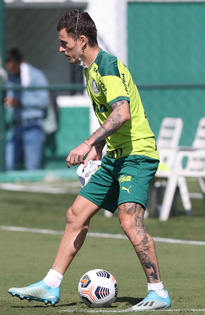 O jogador Gustavo Scarpa, da SE Palmeiras, durante treinamento, na Academia de Futebol. (Foto: Cesar Greco)