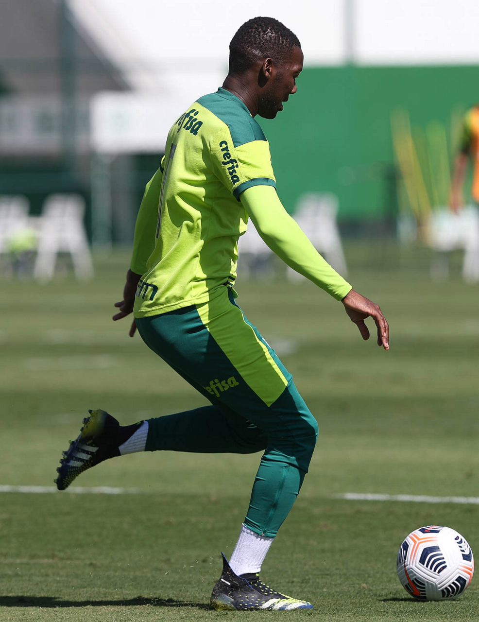 O jogador Mayke, da SE Palmeiras, durante treinamento, na Academia de Futebol. (Foto: Cesar Greco)
