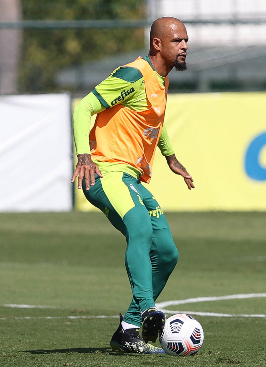 O jogador Felipe Melo, da SE Palmeiras, durante treinamento, na Academia de Futebol. (Foto: Cesar Greco)