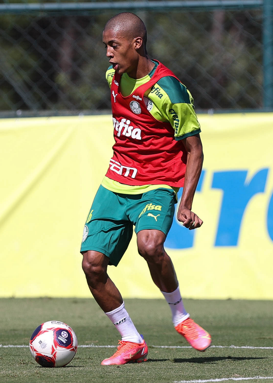 O jogador Gabriel Menino, da SE Palmeiras, durante treinamento, na Academia de Futebol. (Foto: Cesar Greco)