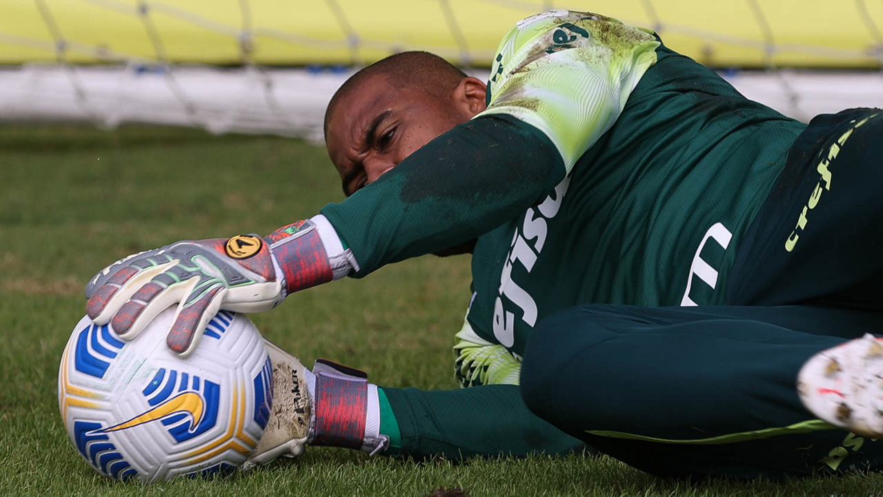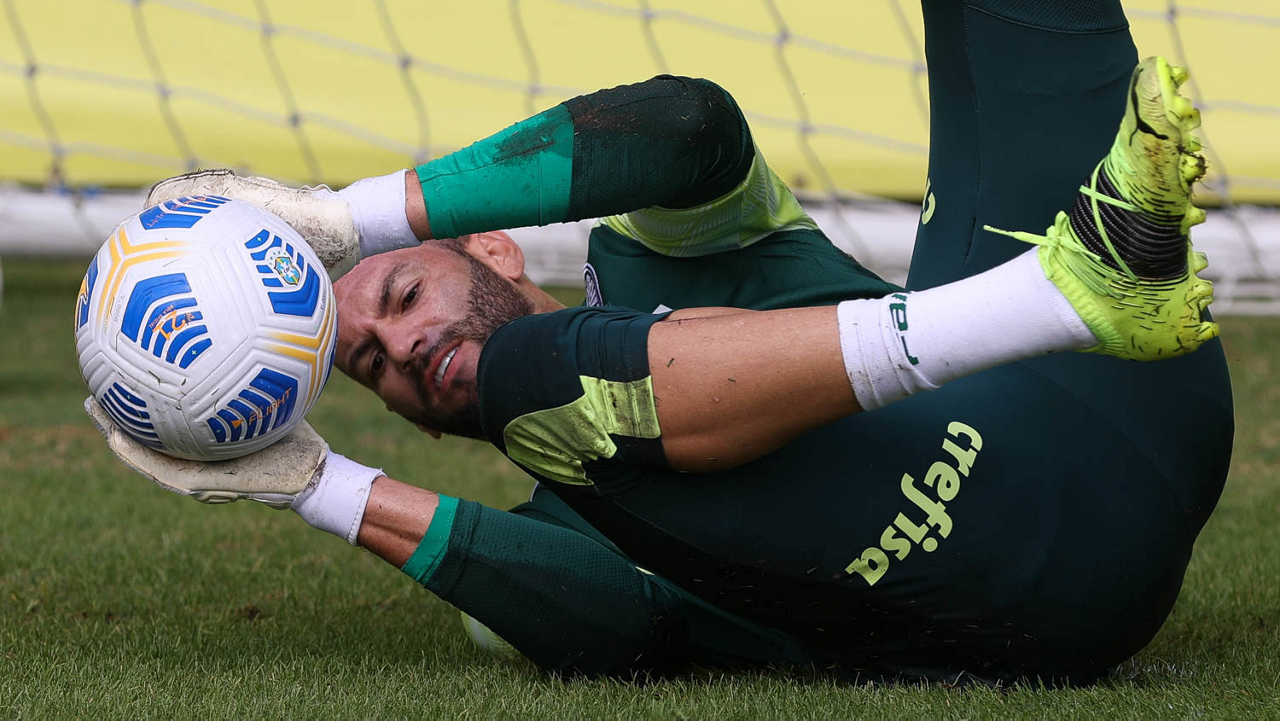 O goleiro Weverton, da SE Palmeiras, durante treinamento, na Academia de Futebol. (Foto: Cesar Greco)