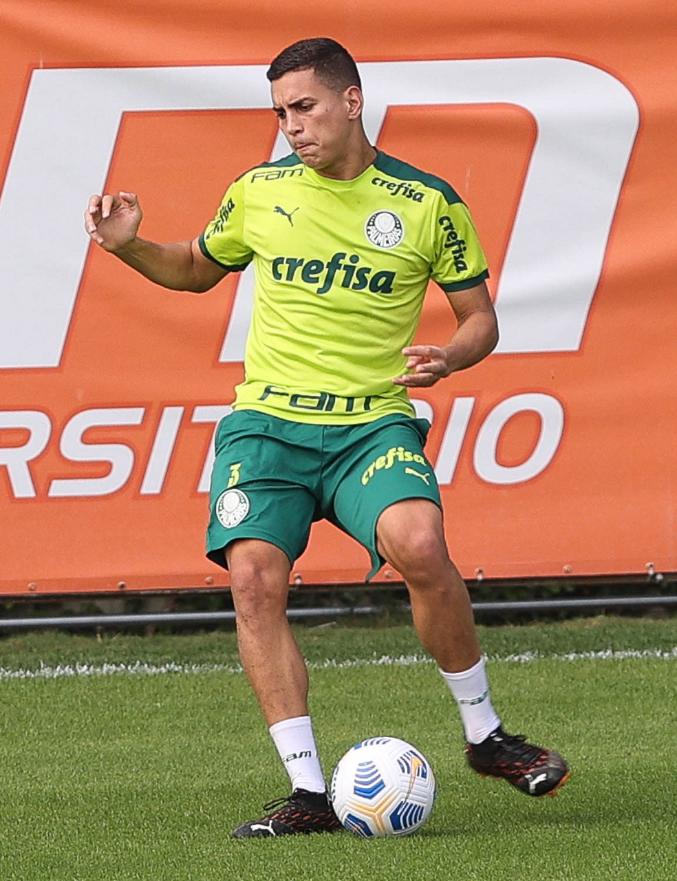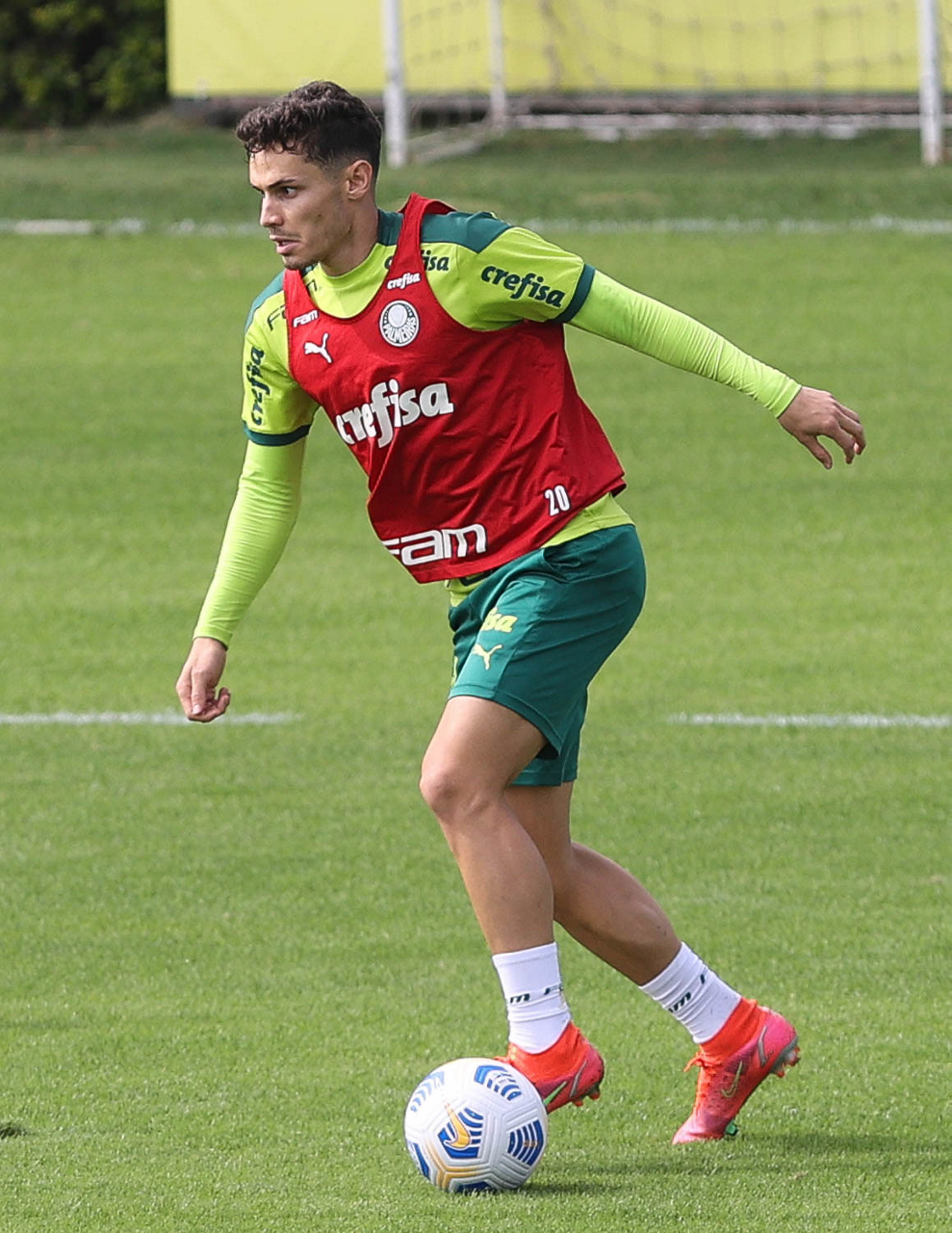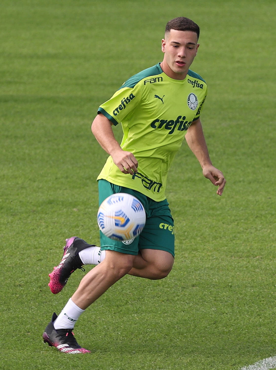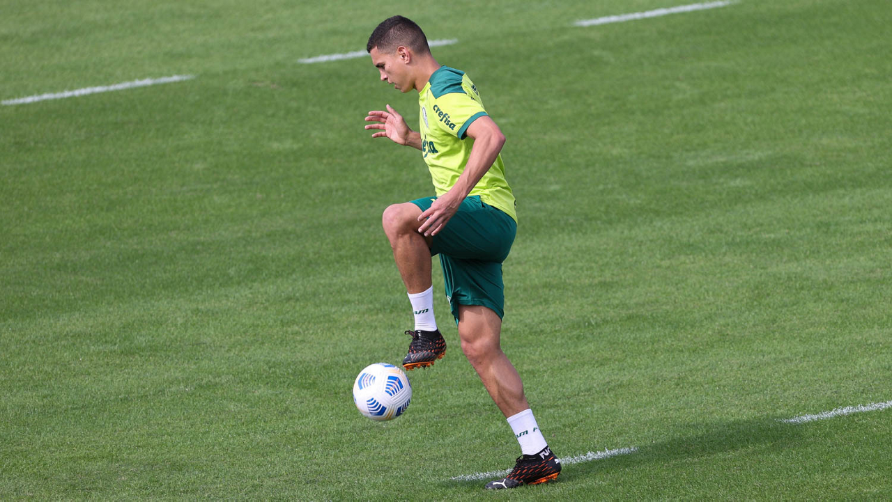 O jogador Raphael Veiga, da SE Palmeiras, durante treinamento, na Academia de Futebol. (Foto: Cesar Greco)