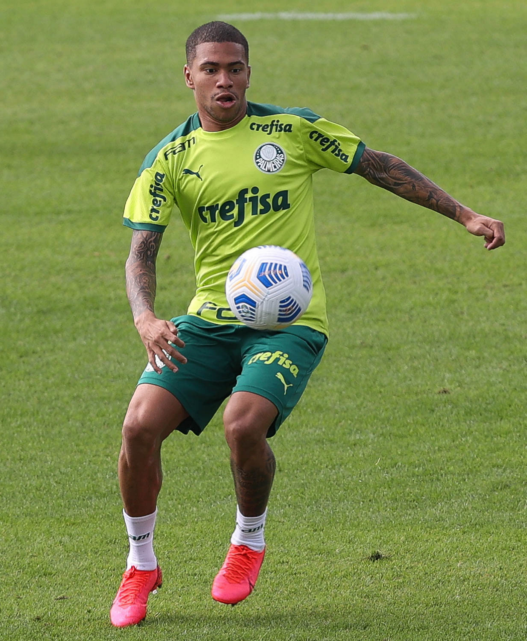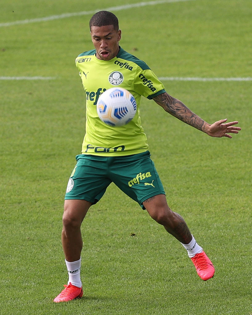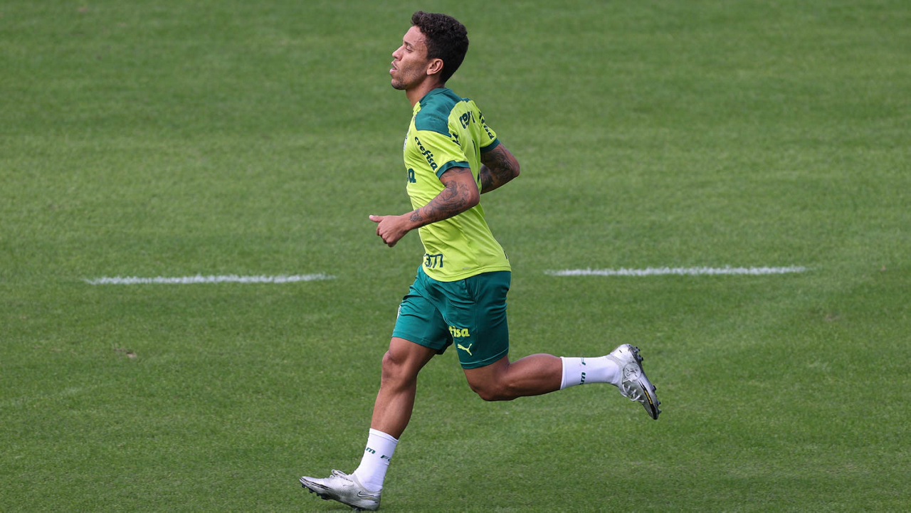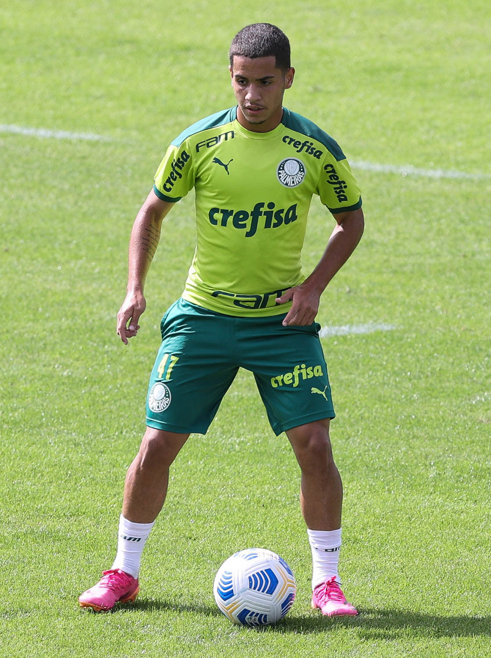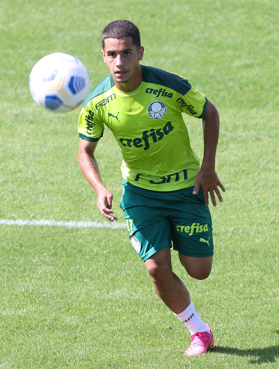 O jogador Raphael Veiga, da SE Palmeiras, durante treinamento, na Academia de Futebol. (Foto: Cesar Greco)