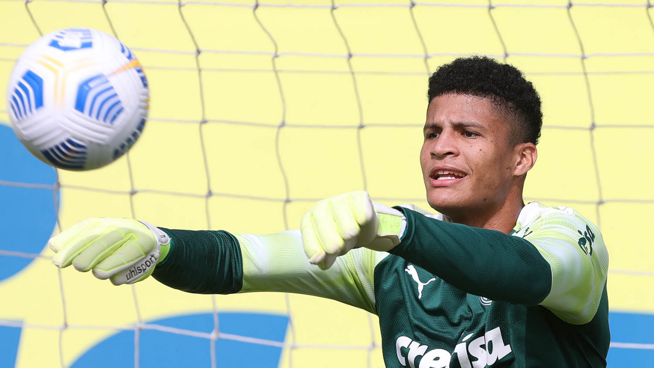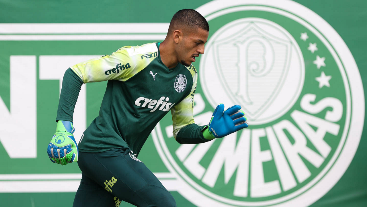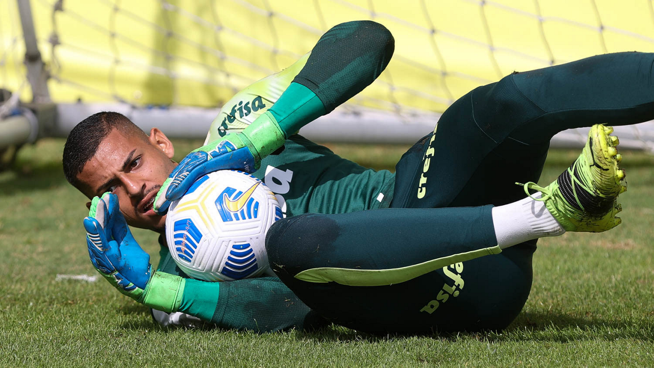 O goleiro Kaique, da SE Palmeiras, durante treinamento, na Academia de Futebol. (Foto: Cesar Greco)