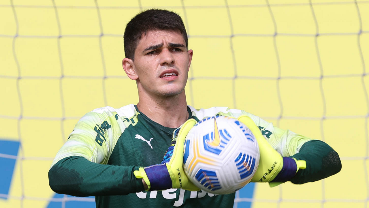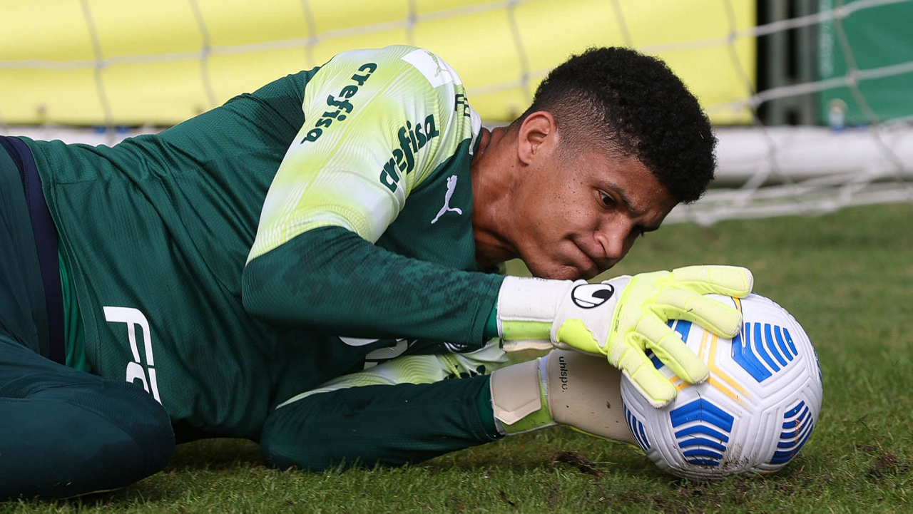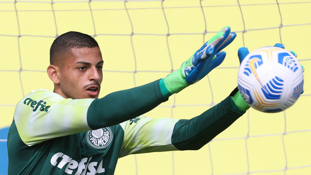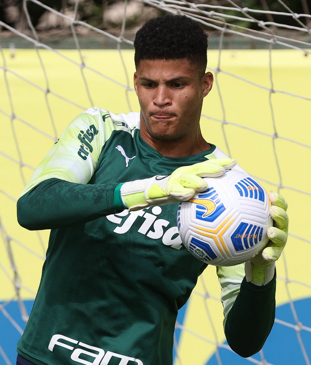 O goleiro Kaique, da SE Palmeiras, durante treinamento, na Academia de Futebol. (Foto: Cesar Greco)