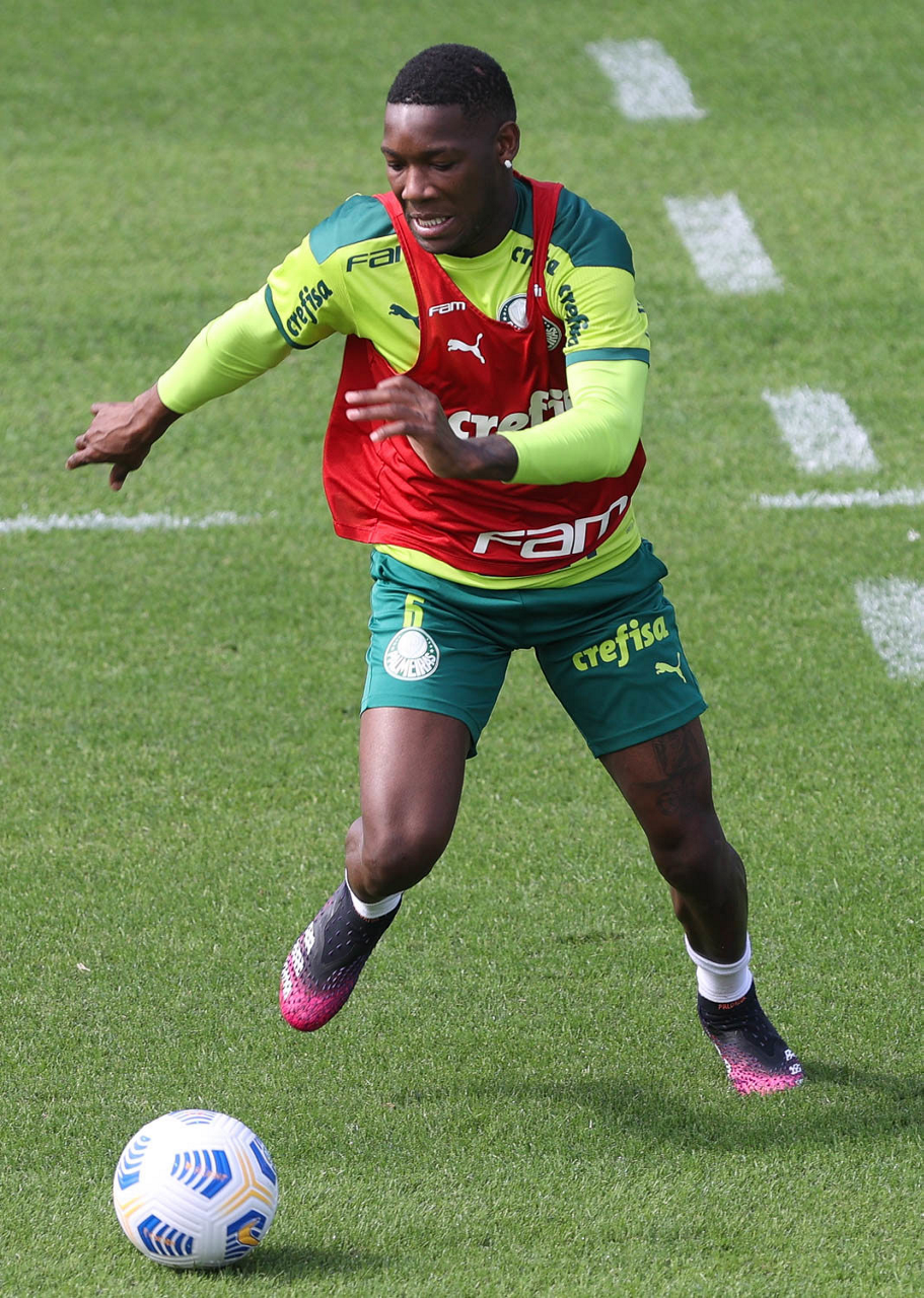 O jogador Victor Luis, da SE Palmeiras, durante treinamento, na Academia de Futebol. (Foto: Cesar Greco)