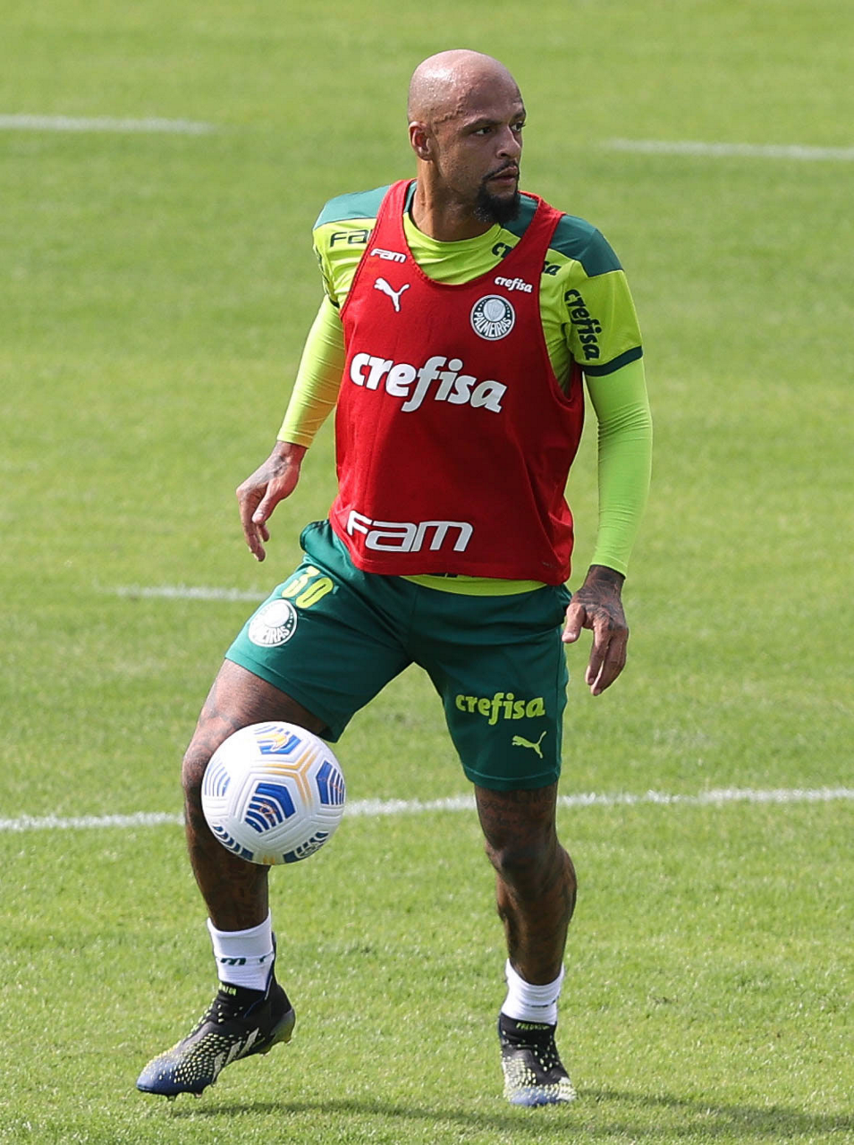 O jogador Felipe Melo, da SE Palmeiras, durante treinamento, na Academia de Futebol. (Foto: Cesar Greco)
