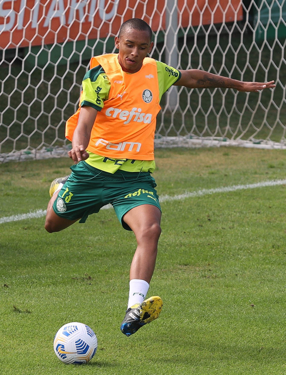 O jogador Vitinho, da SE Palmeiras, durante treinamento, na Academia de Futebol. (Foto: Cesar Greco)