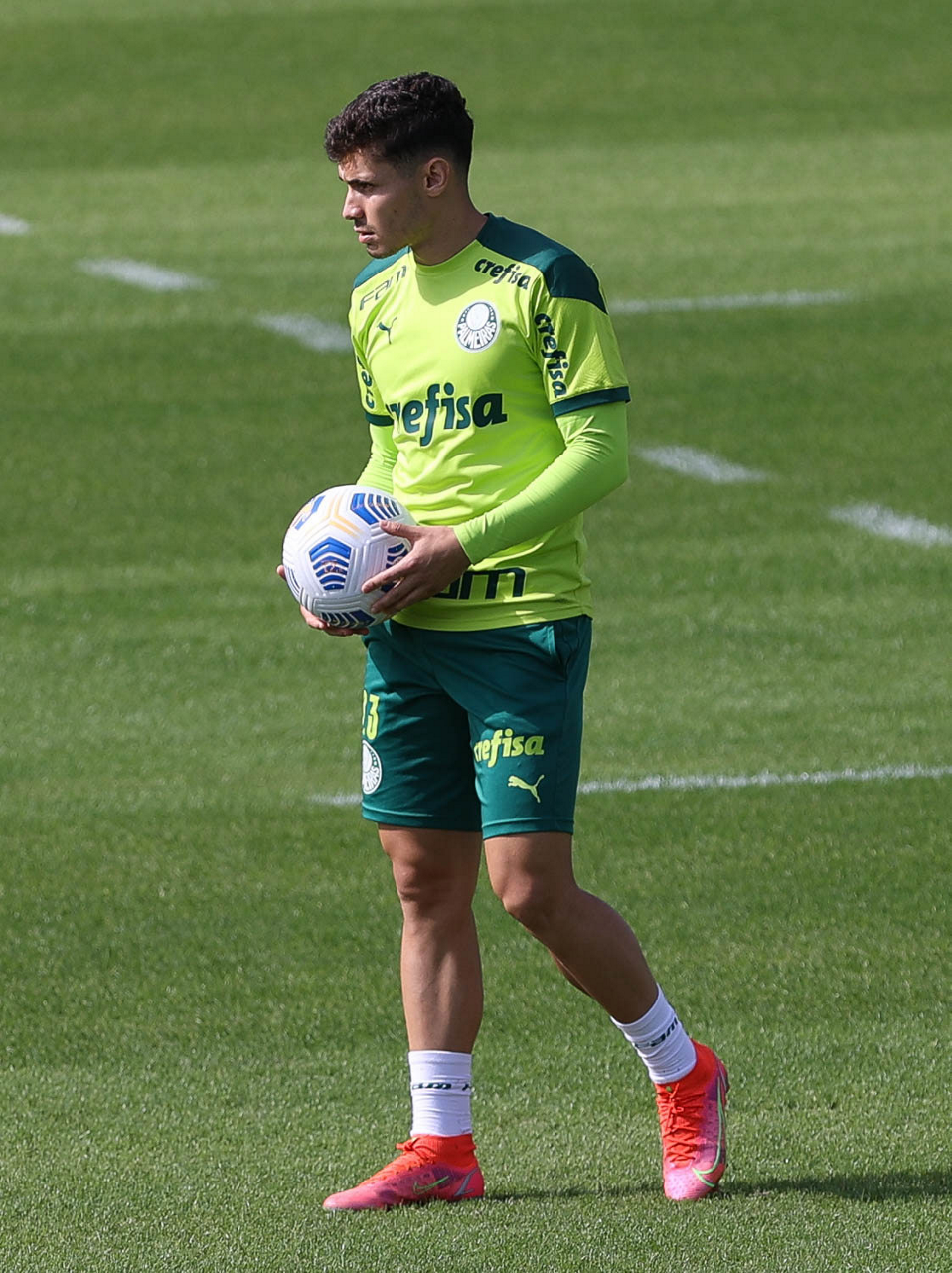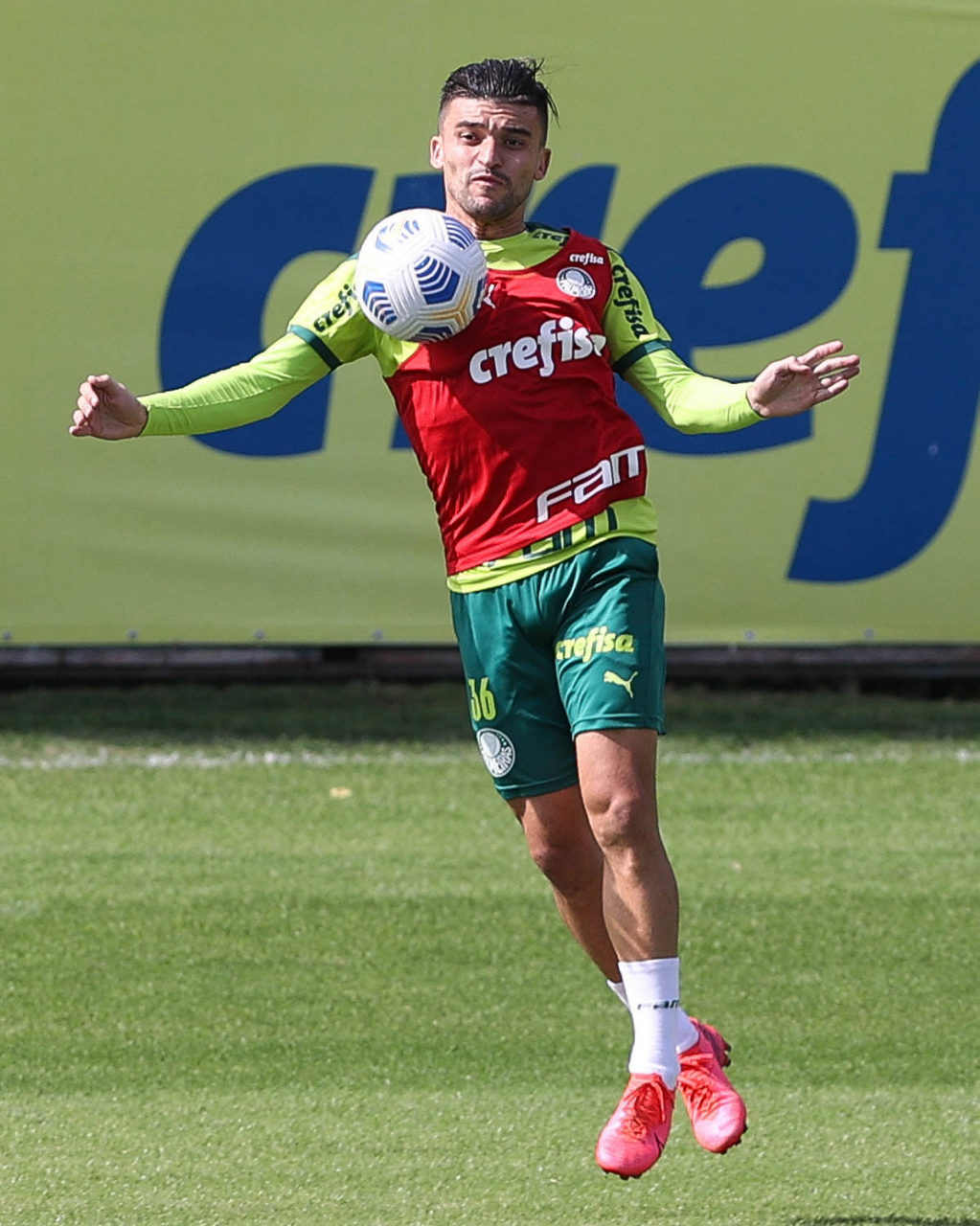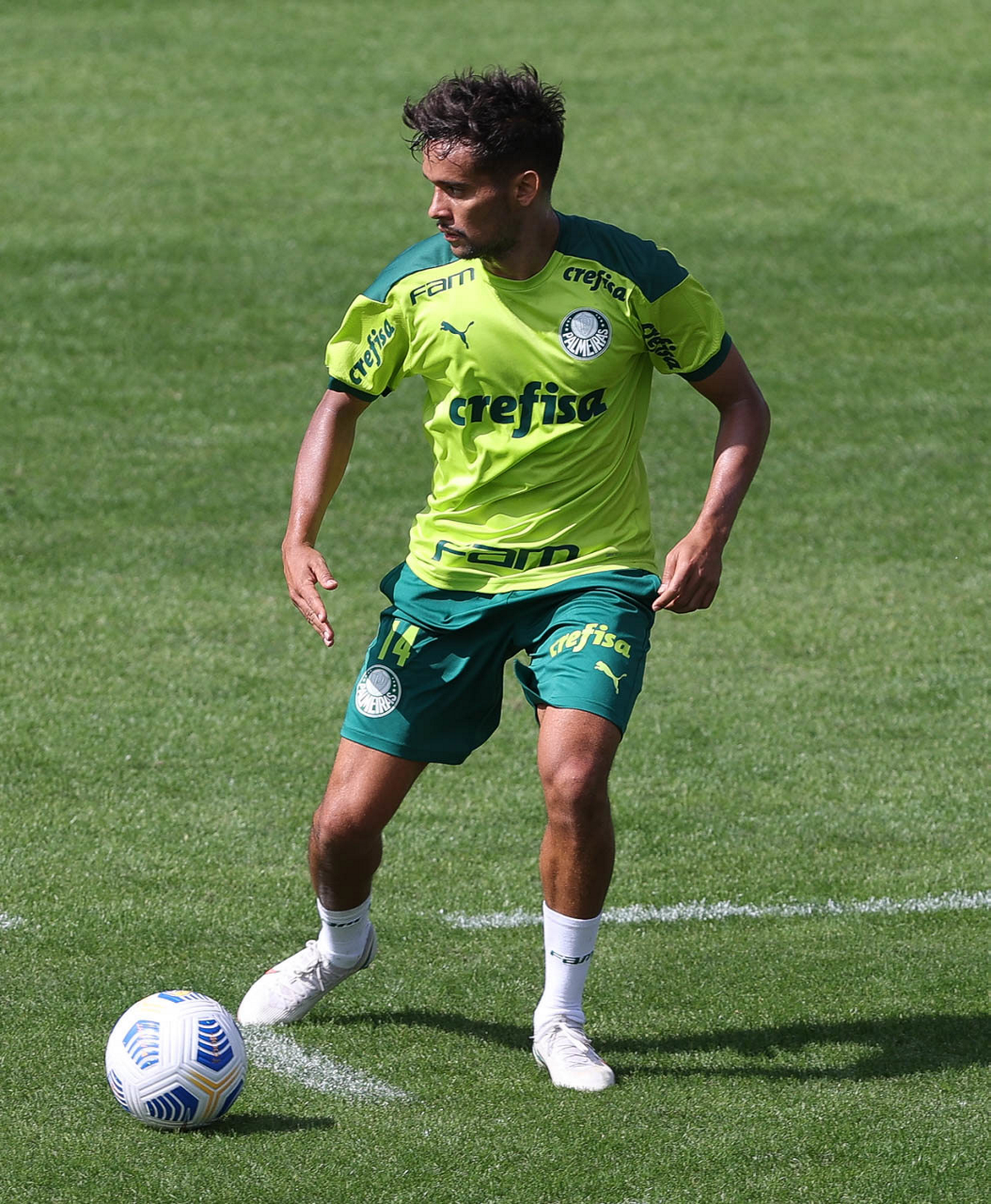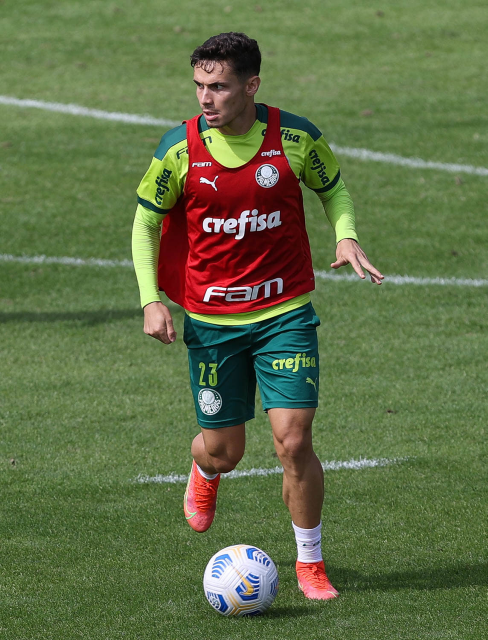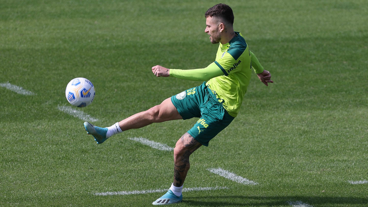 Os jogadores Raphael Veiga, Danilo Barbosa, Victor Luis, Renan, Gustavo Gómez e o goleiro Vinicius (E/D em pé) e Rony, Zé Rafael, Danilo, Lucas Lima e Willian (E/D agachados), da SE Palmeiras, durante treinamento, na Academia de Futebol. (Foto: Cesar Greco)
