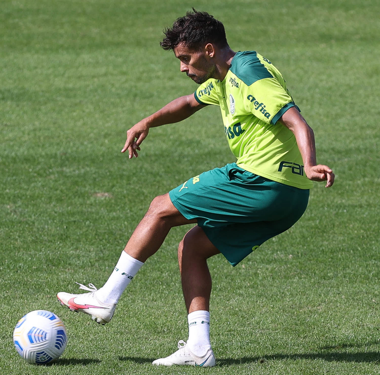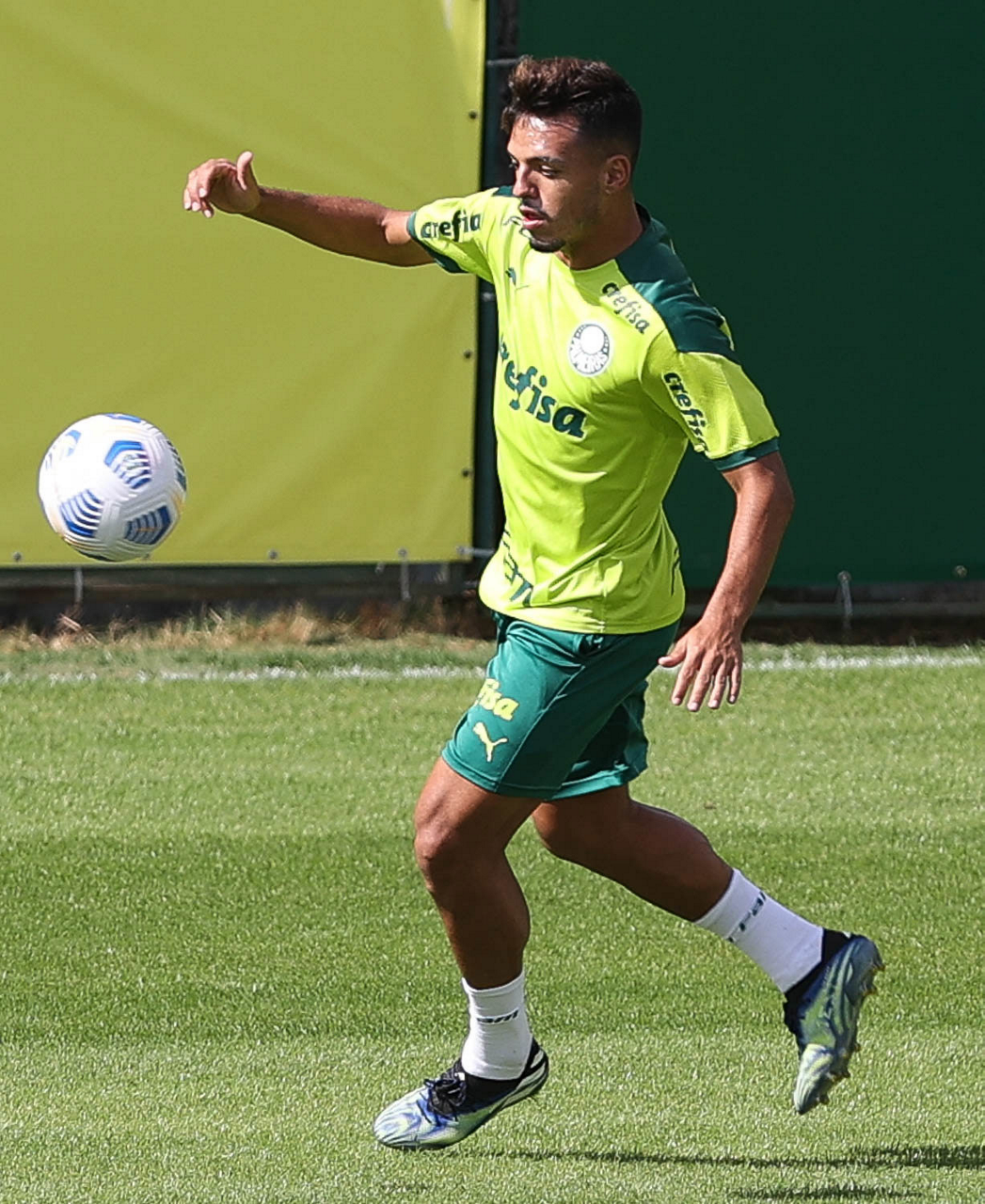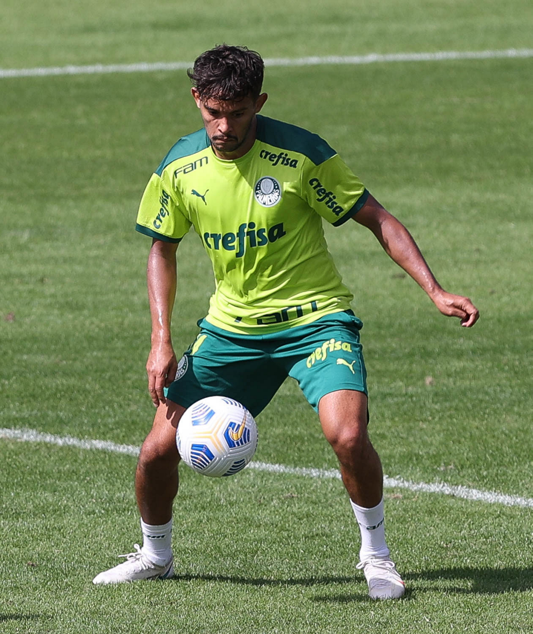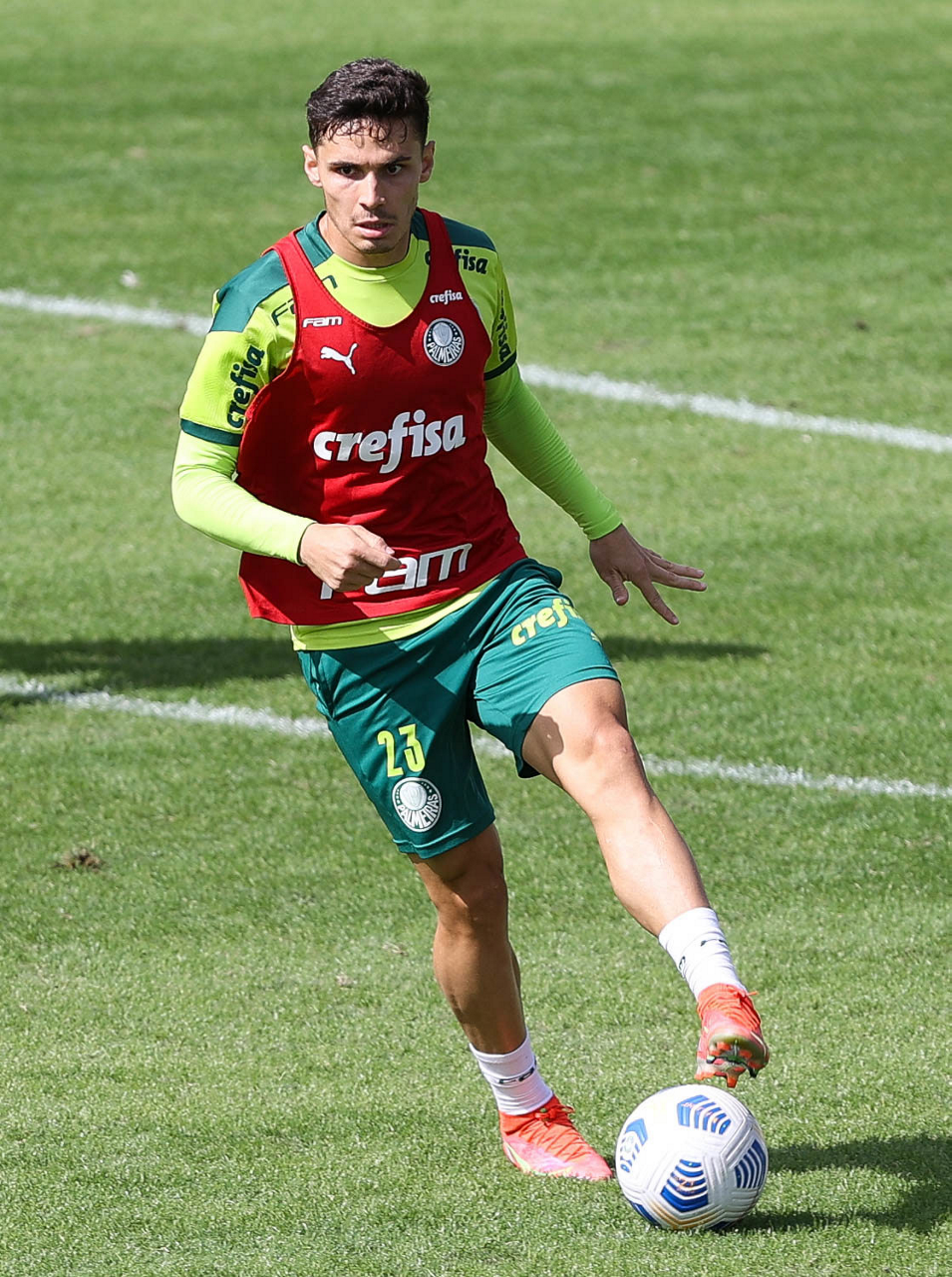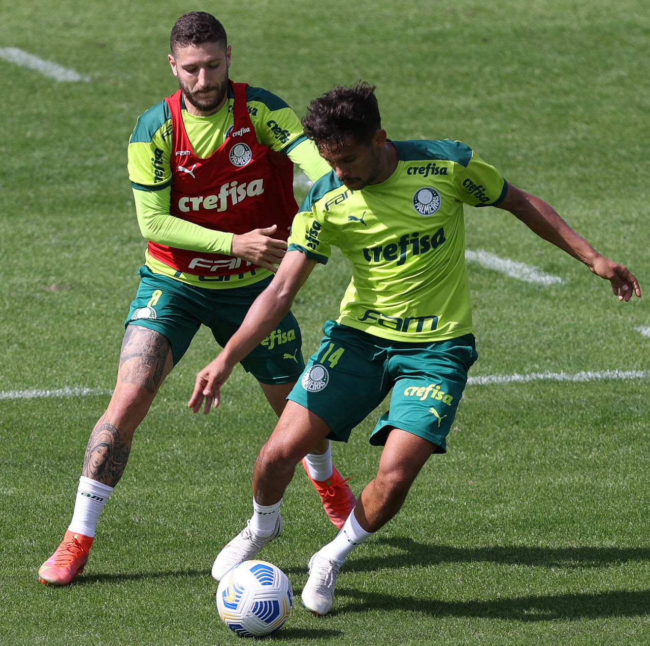 Os jogadores Raphael Veiga, Danilo Barbosa, Victor Luis, Renan, Gustavo Gómez e o goleiro Vinicius (E/D em pé) e Rony, Zé Rafael, Danilo, Lucas Lima e Willian (E/D agachados), da SE Palmeiras, durante treinamento, na Academia de Futebol. (Foto: Cesar Greco)