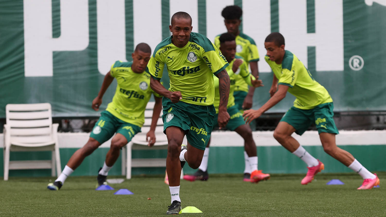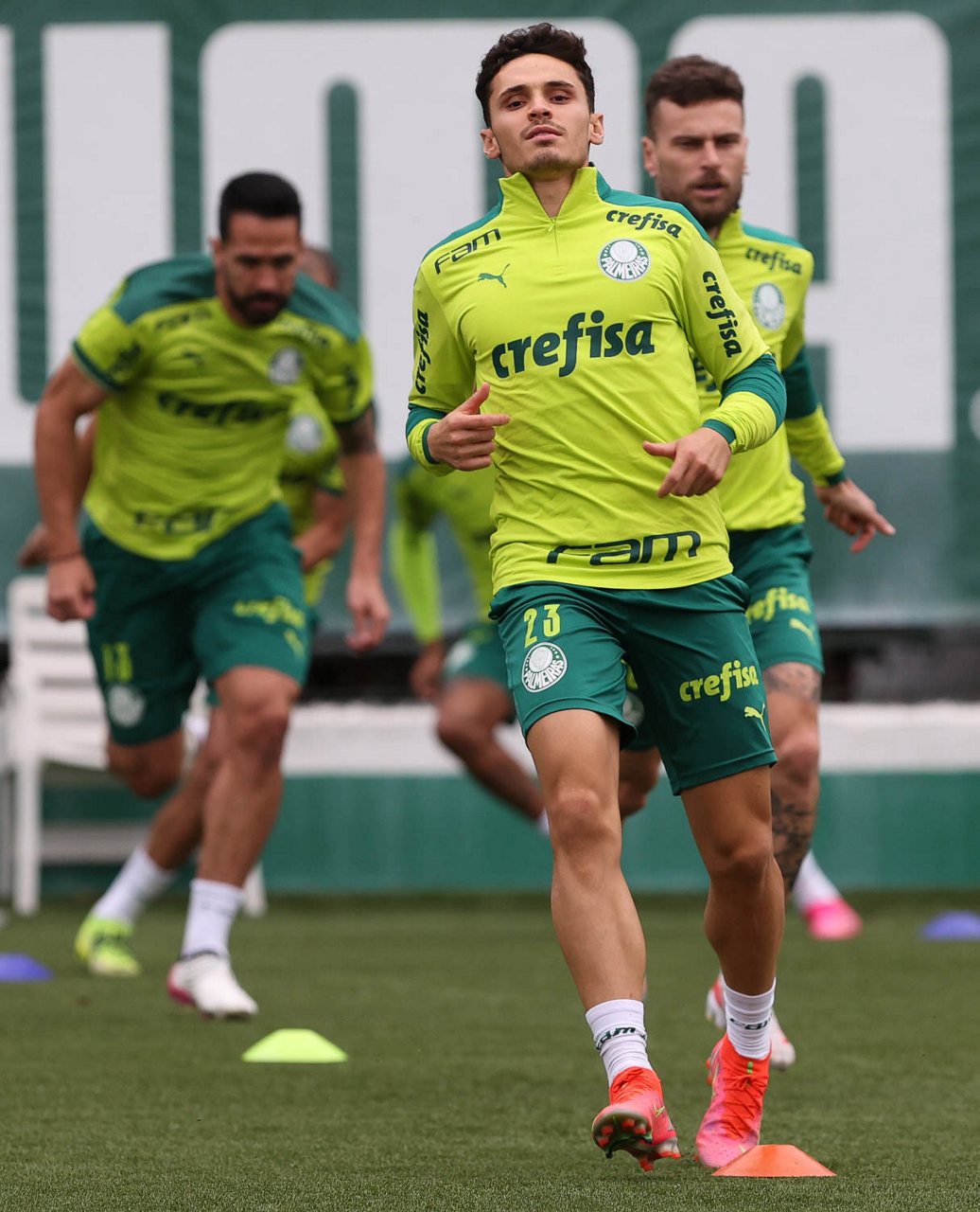 O jogador Raphael Veiga, da SE Palmeiras, durante treinamento, na Academia de Futebol. (Foto: Cesar Greco)