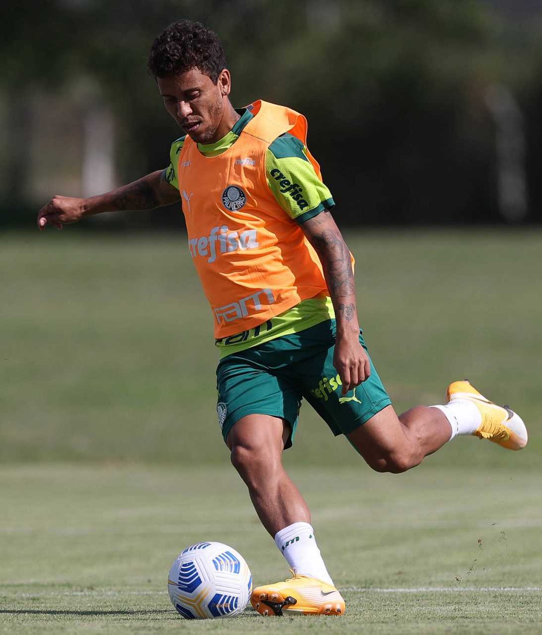 O jogador Fabinho, da SE Palmeiras, durante treinamento, no CT do Libertad, em Assunção. (Foto: Cesar Greco)