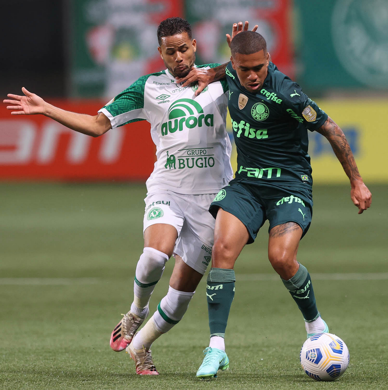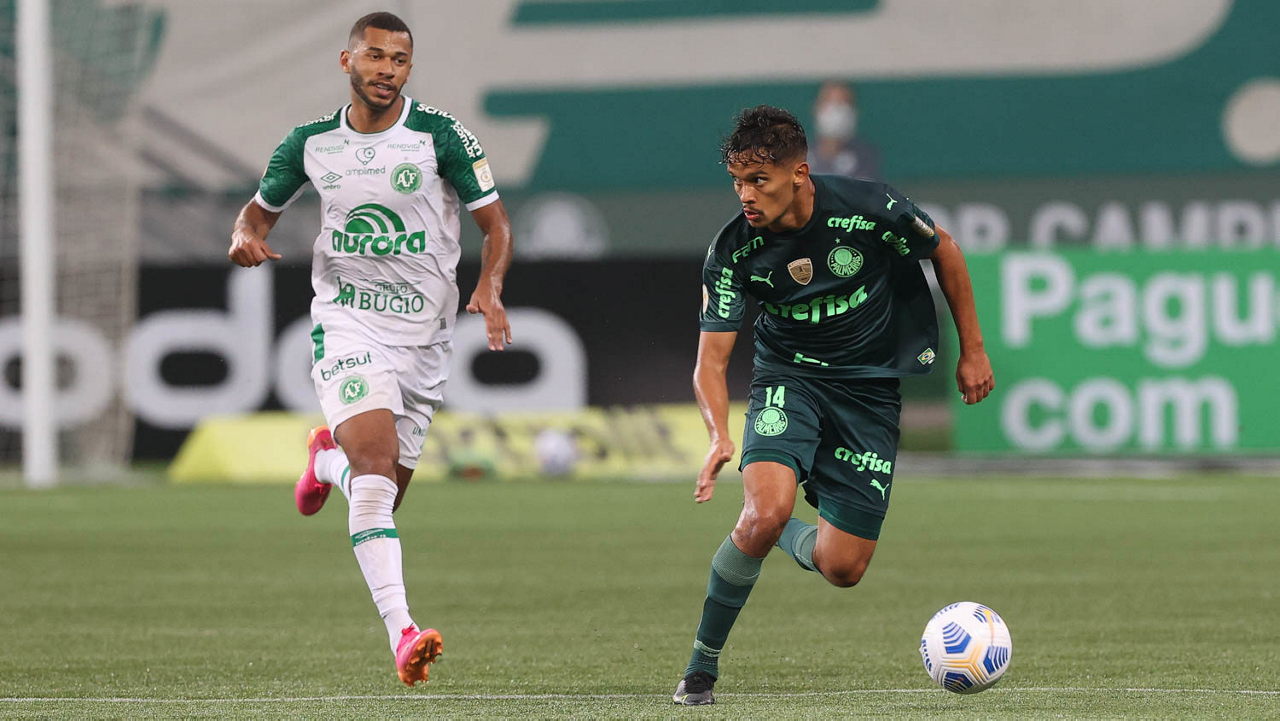 O jogador Mayke, da SE Palmeiras, em jogo contra a equipe da A Chapecoense F, durante partida válida pela segunda rodada, do Campeonato Brasileiro, Série A, na arena Allainz Parque. (Foto: Cesar Greco)