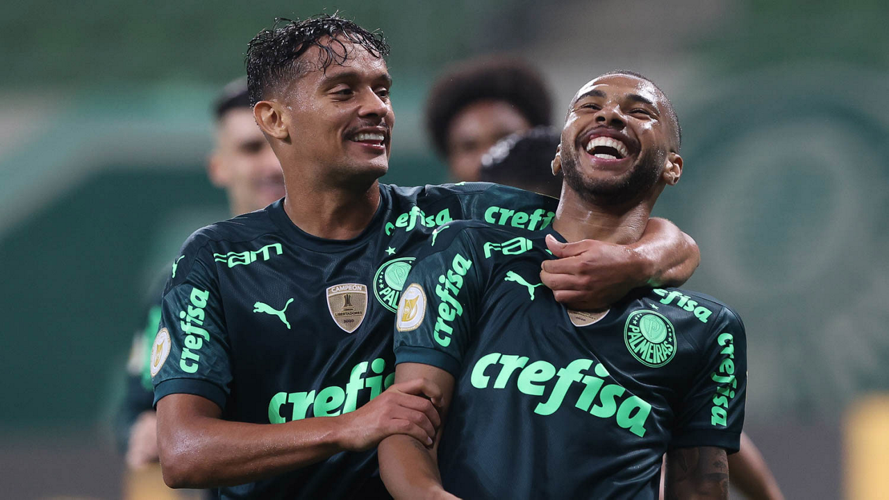 O técnico Abel Ferreira e o jogador Gustavo Scarpa (D), da SE Palmeiras, em jogo contra a equipe da A Chapecoense F, durante partida válida pela segunda rodada, do Campeonato Brasileiro, Série A, na arena Allainz Parque. (Foto: Cesar Greco)