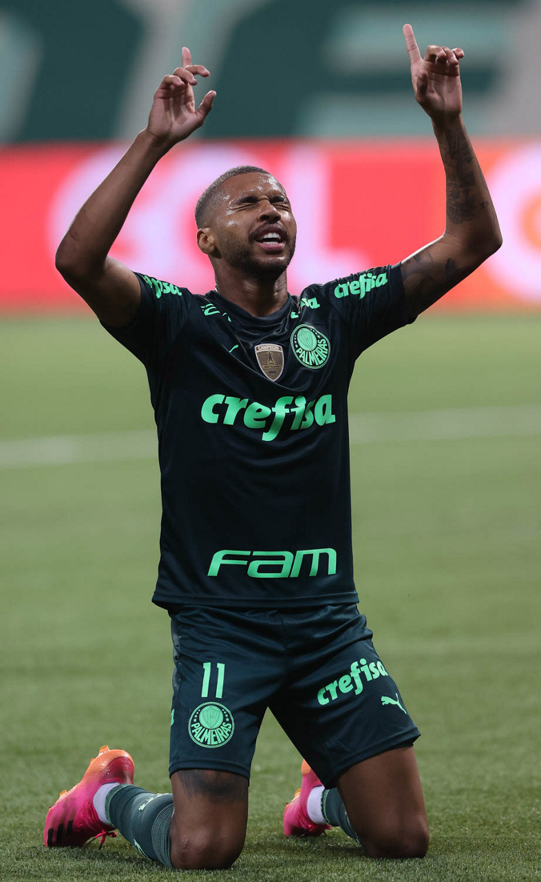 O jogador Wesley, da SE Palmeiras, comemora seu gol contra a equipe da A Chapecoense F, durante partida válida pela segunda rodada, do Campeonato Brasileiro, Série A, na arena Allainz Parque. (Foto: Cesar Greco)