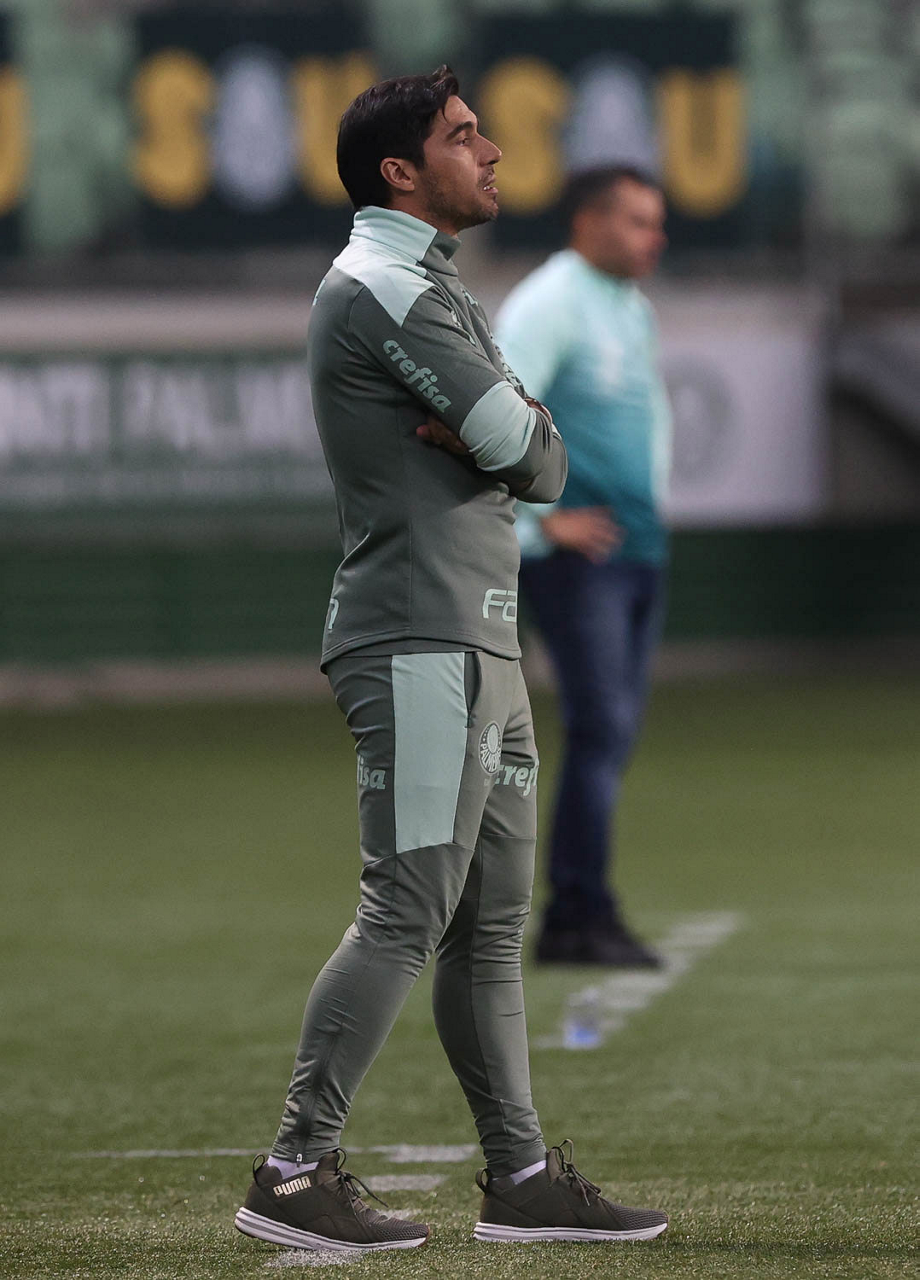 O técnico Abel Ferreira, da SE Palmeiras, em jogo contra a equipe da A Chapecoense F, durante partida válida pela segunda rodada, do Campeonato Brasileiro, Série A, na arena Allainz Parque. (Foto: Cesar Greco)