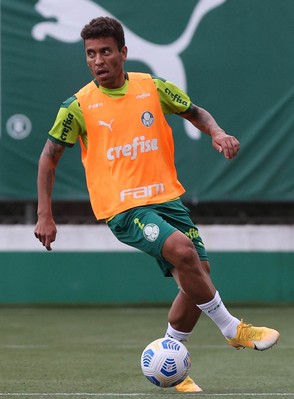 O jogador Marcos Rocha, da SE Palmeiras, durante treinamento, na Academia de Futebol. (Foto: Cesar Greco)