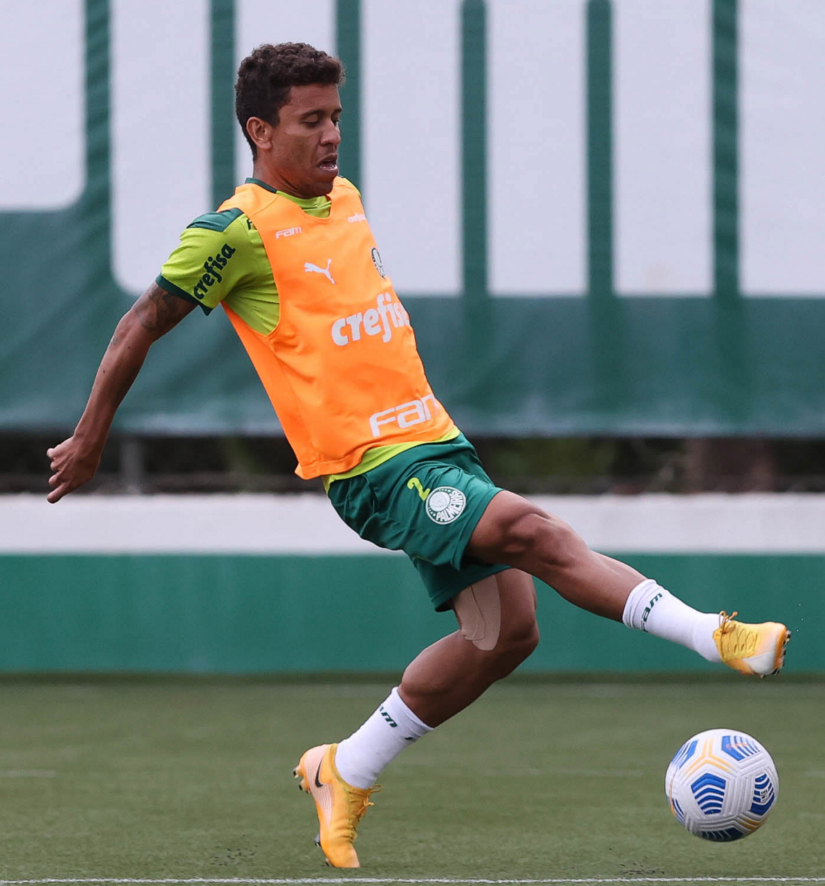 O jogador Fabinho, da SE Palmeiras, durante treinamento, na Academia de Futebol. (Foto: Cesar Greco)