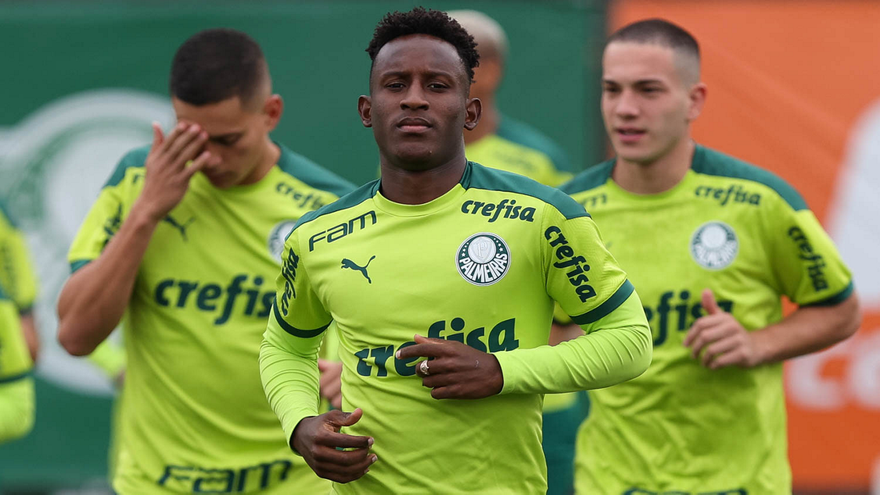 O jogador Angulo, da SE Palmeiras, durante treinamento, na Academia de Futebol. (Foto: Cesar Greco)