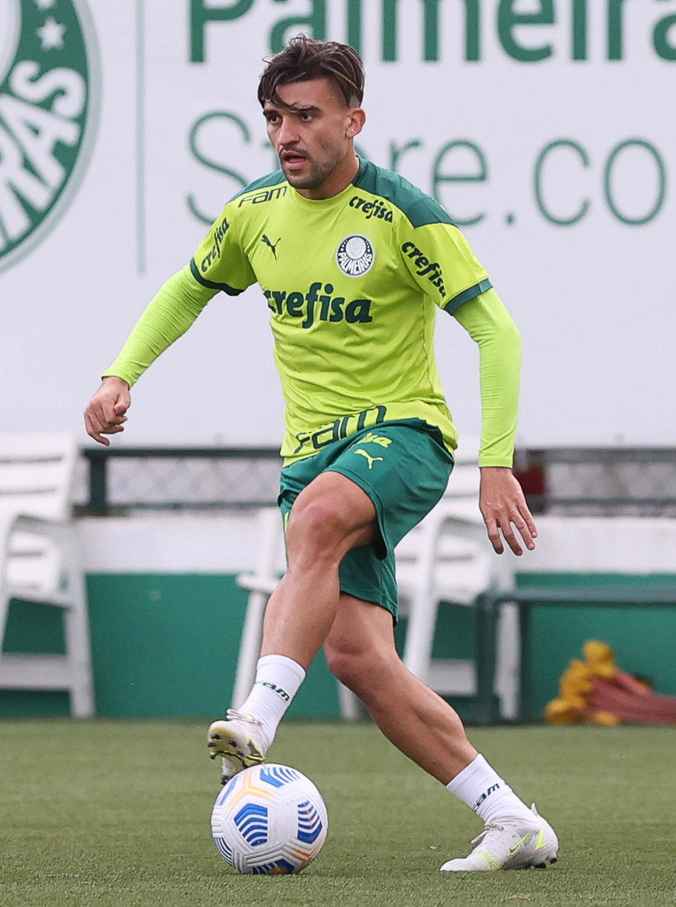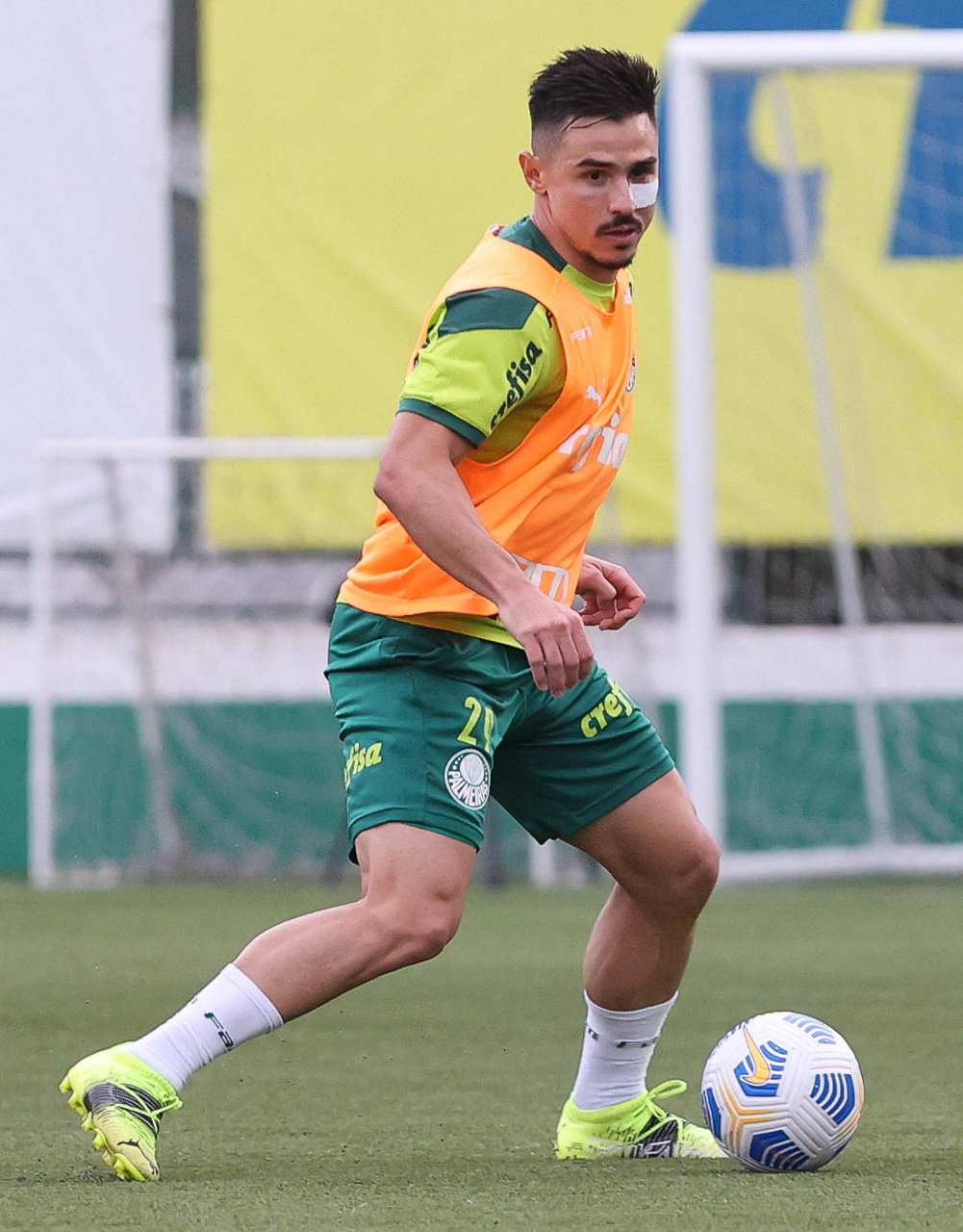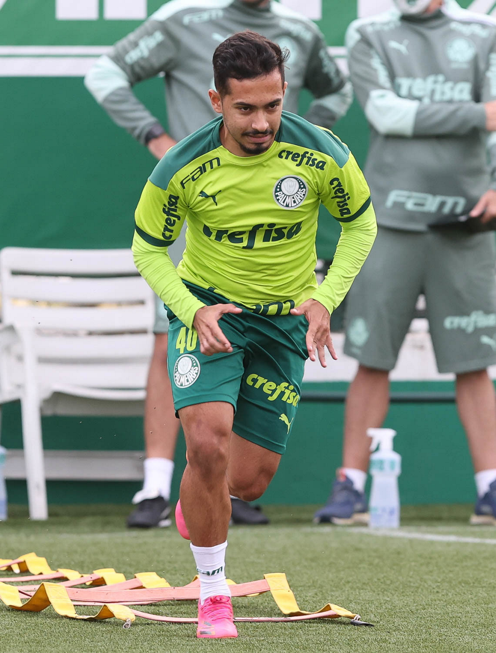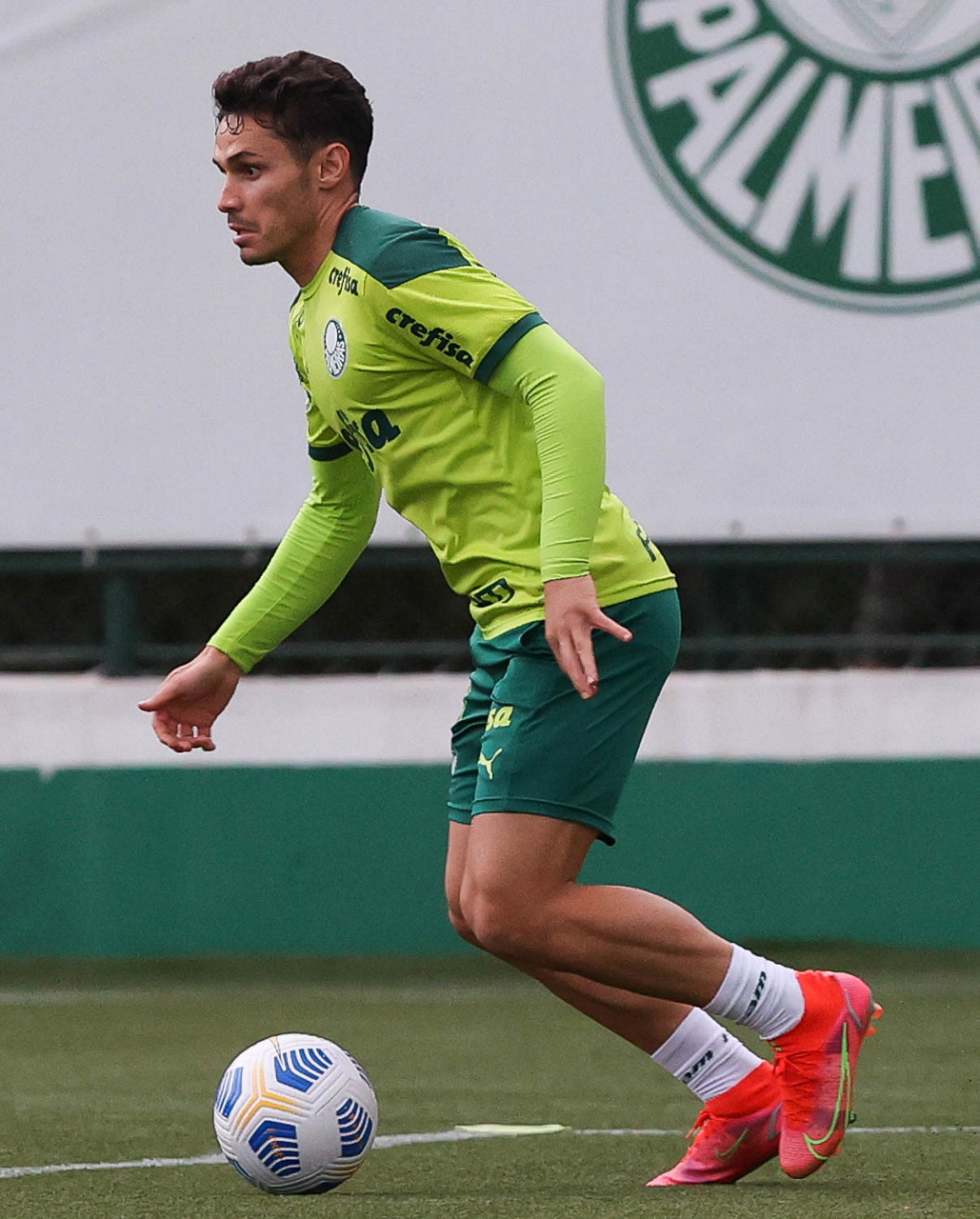 O jogador Raphael Veiga, da SE Palmeiras, durante treinamento, na Academia de Futebol. (Foto: Cesar Greco)