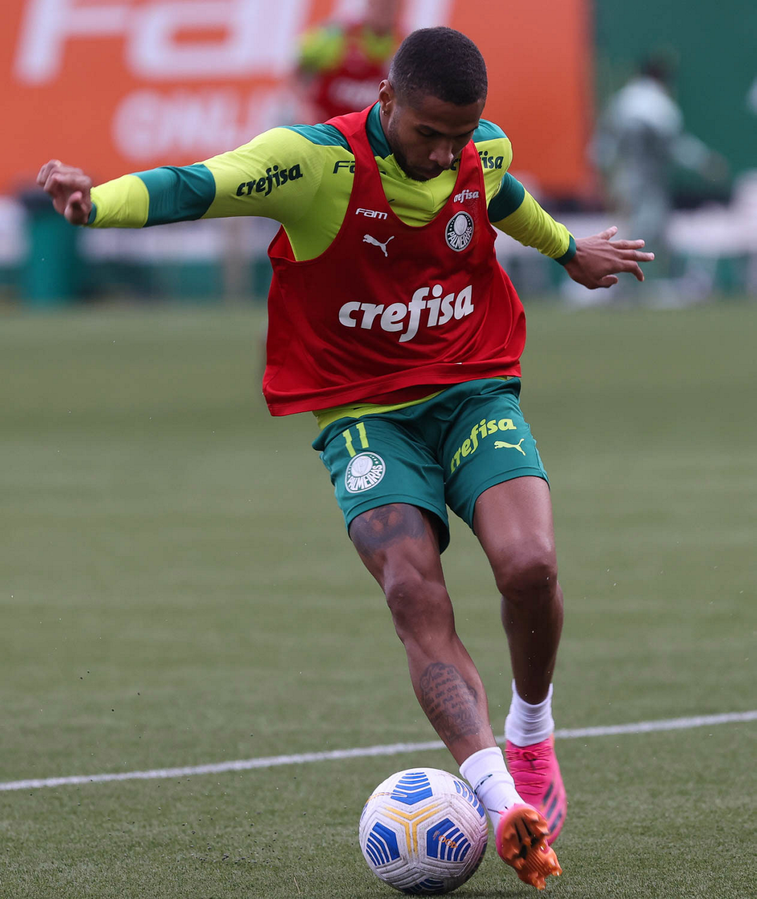 O jogador Deyverson, da SE Palmeiras, durante treinamento, na Academia de Futebol. (Foto: Cesar Greco)