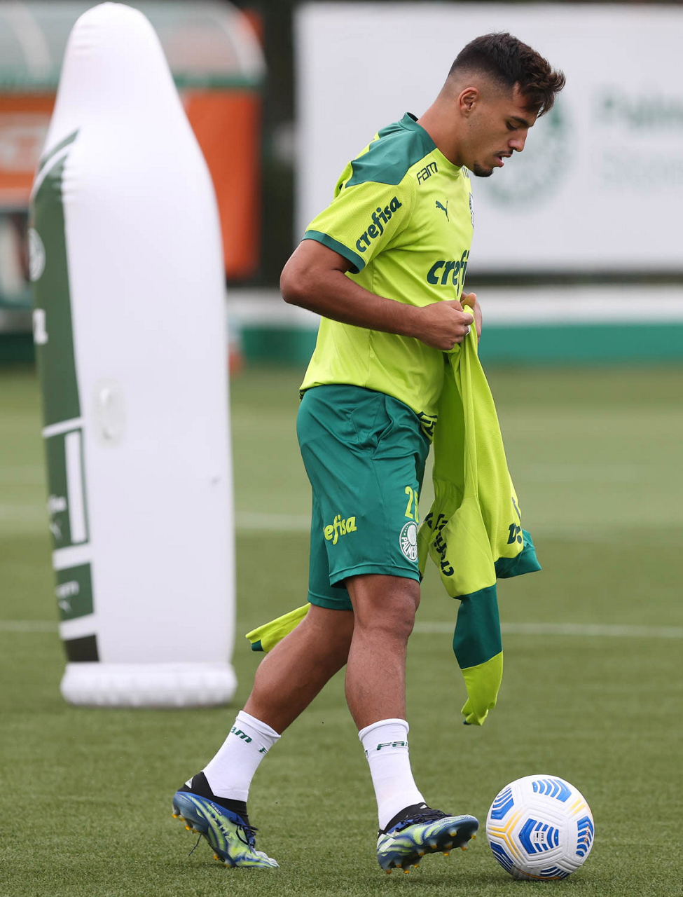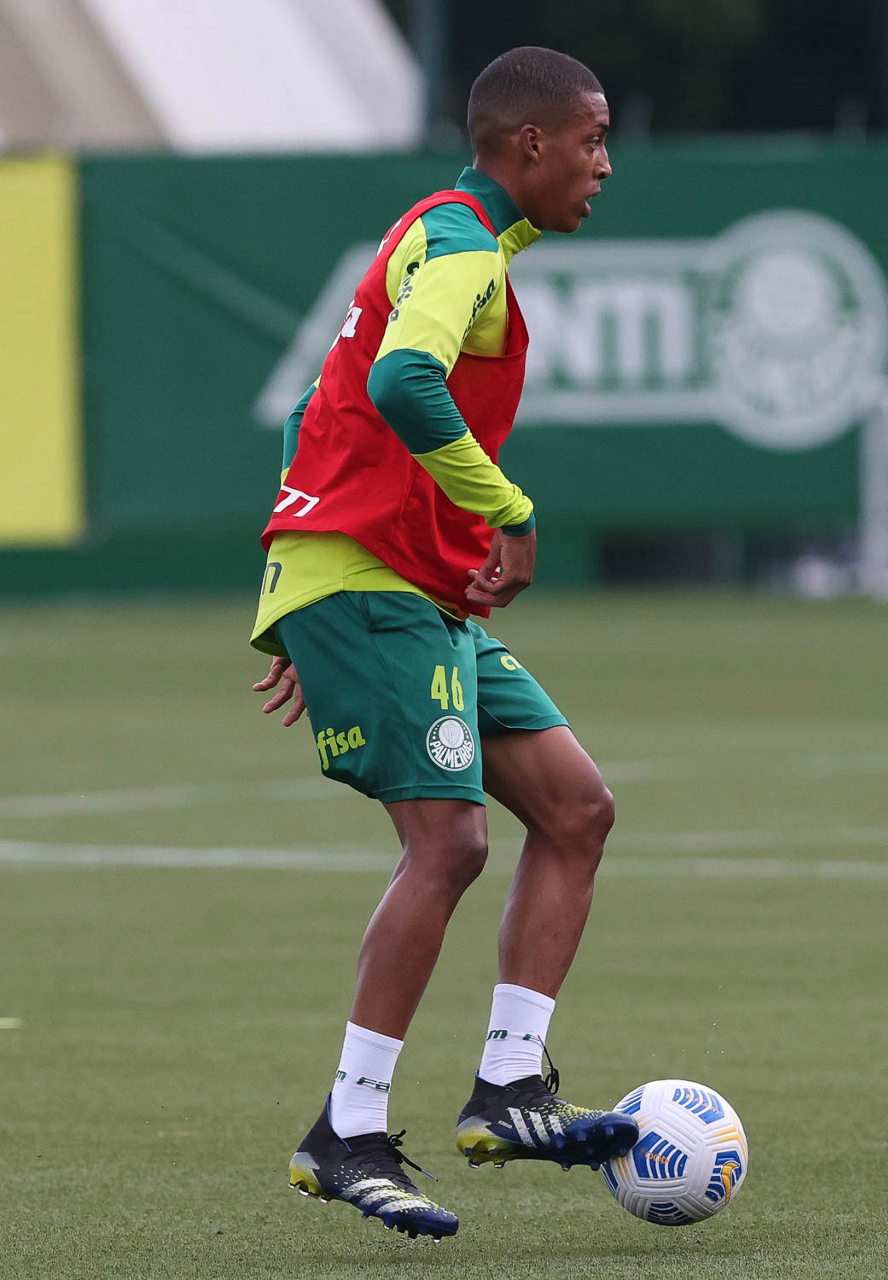 O jogador Gabriel Menino, da SE Palmeiras, durante treinamento, na Academia de Futebol. (Foto: Cesar Greco)