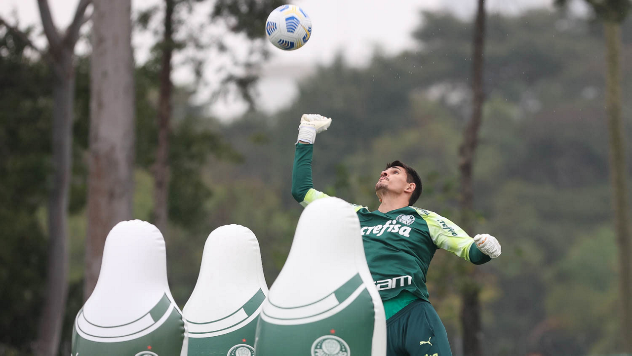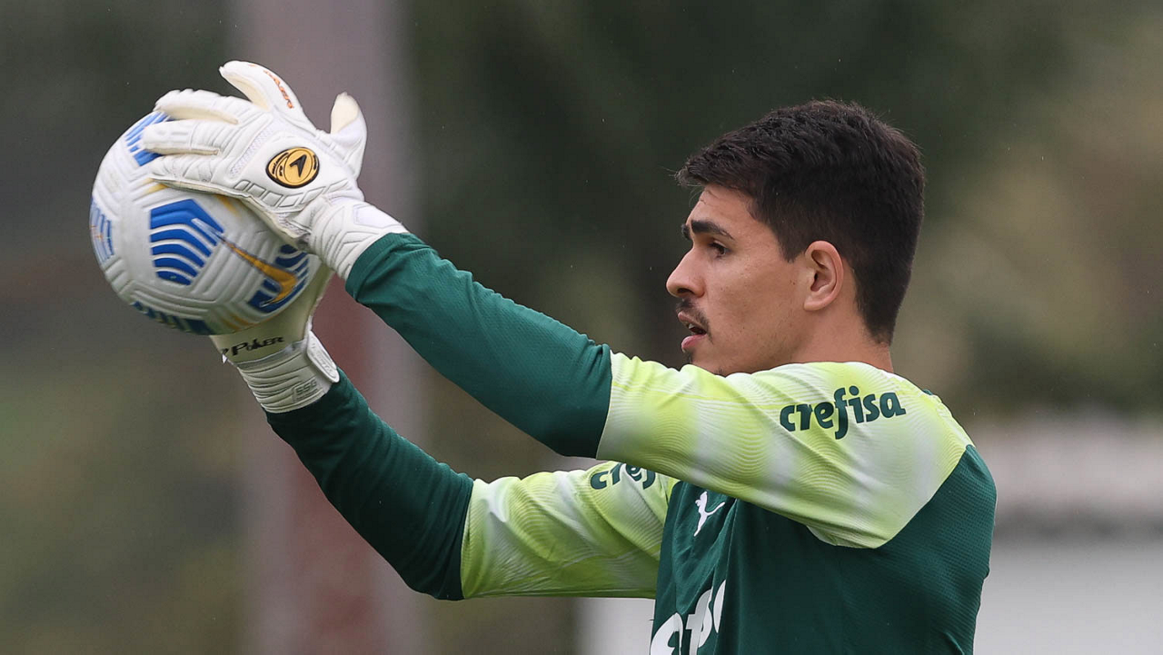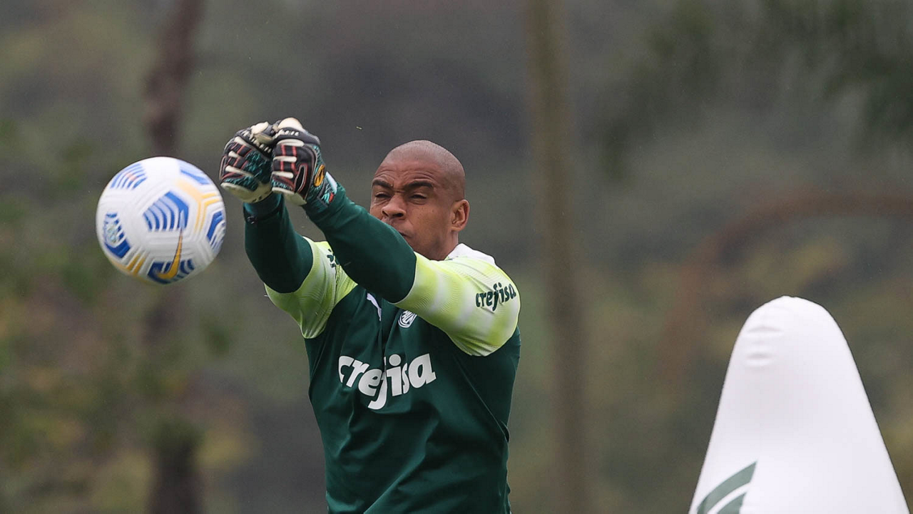 O goleiro Mateus, da SE Palmeiras, durante treinamento, na Academia de Futebol. (Foto: Cesar Greco)