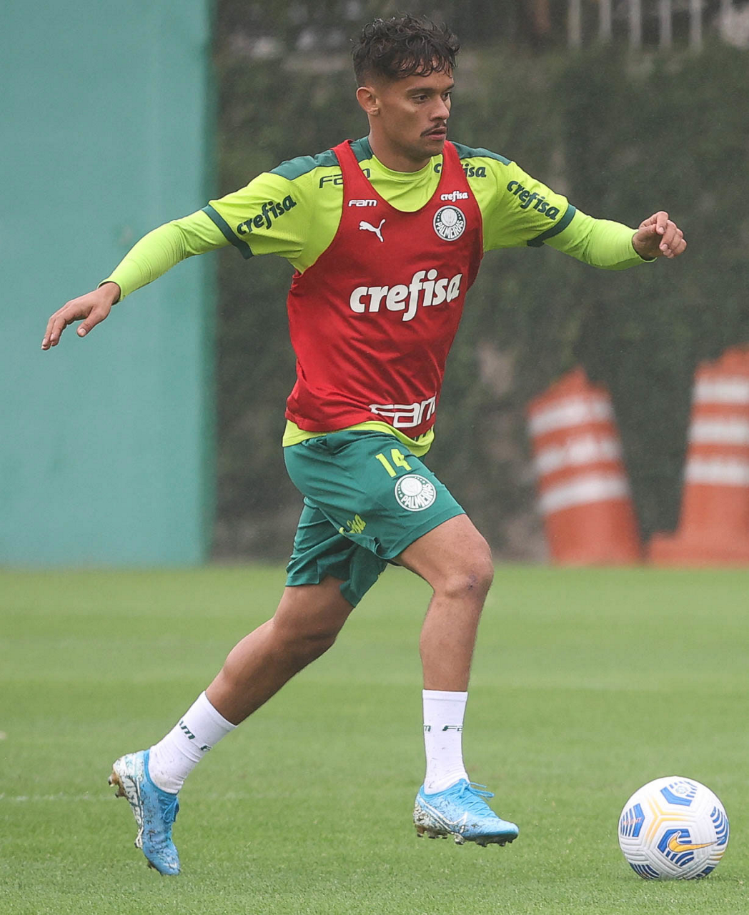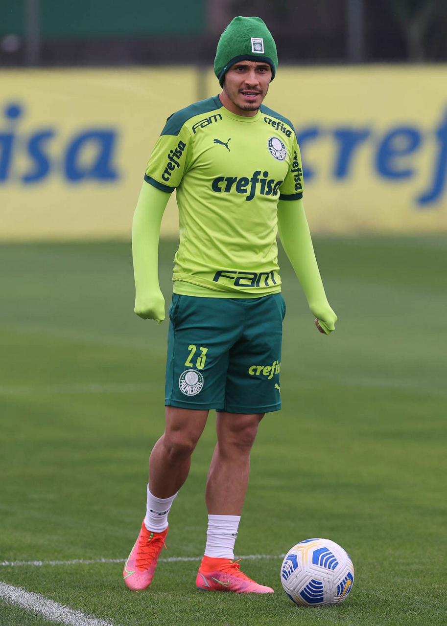 O jogador Raphael Veiga, da SE Palmeiras, durante treinamento, na Academia de Futebol. (Foto: Cesar Greco)