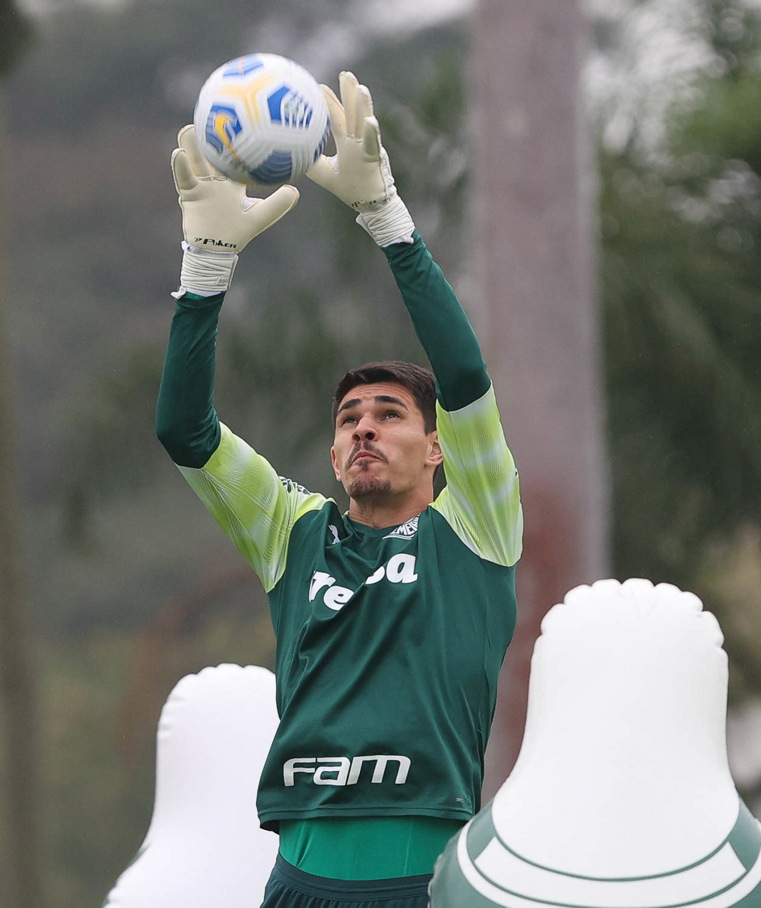 O goleiro Natan, da SE Palmeiras, durante treinamento, na Academia de Futebol. (Foto: Cesar Greco)
