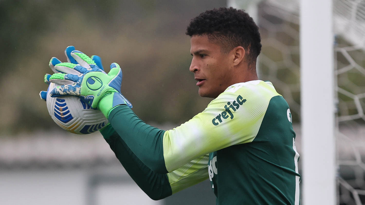 O goleiro Vinicius, da SE Palmeiras, durante treinamento, na Academia de Futebol. (Foto: Cesar Greco)