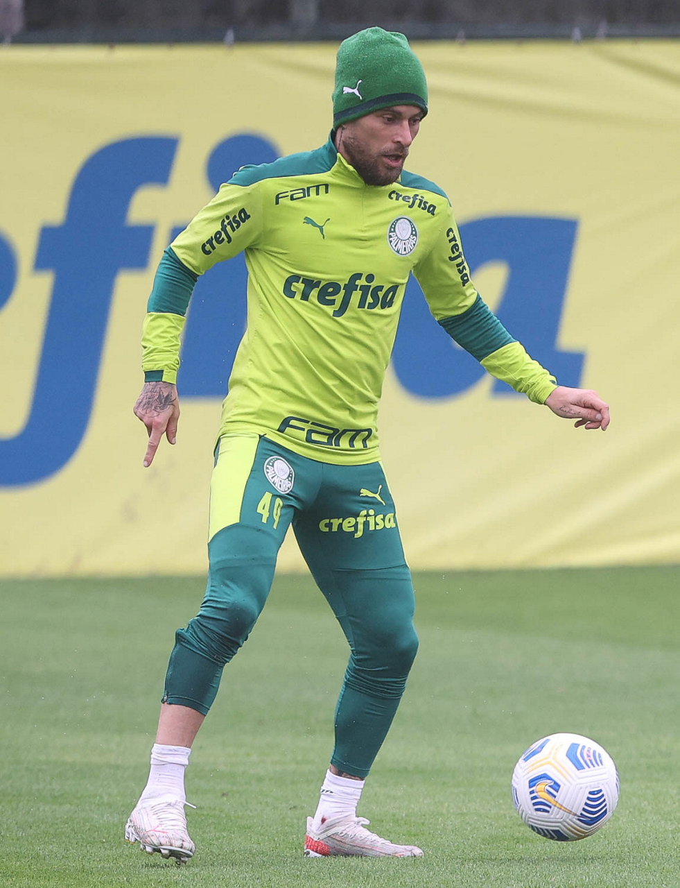 O jogador Patrick de Paula, da SE Palmeiras, durante treinamento, na Academia de Futebol. (Foto: Cesar Greco)