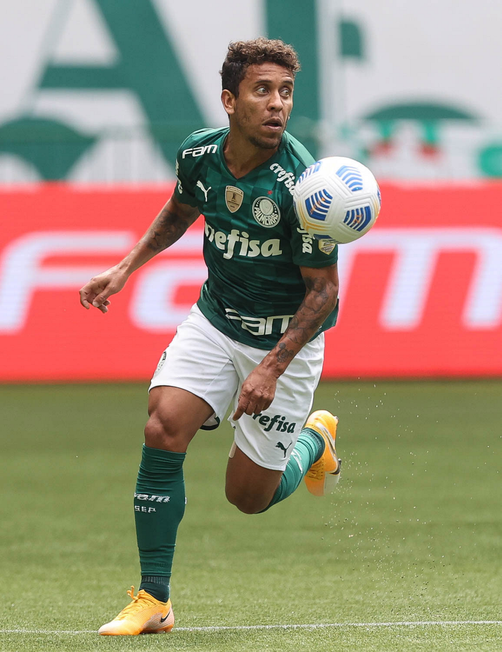 O jogador Marcos Rocha, da SE Palmeiras, em jogo contra a equipe do América FC, durante partida válida pela quinta rodada, do Campeonato Brasileiro, Série A, na arena Allianz Parque. (Foto: Cesar Greco)