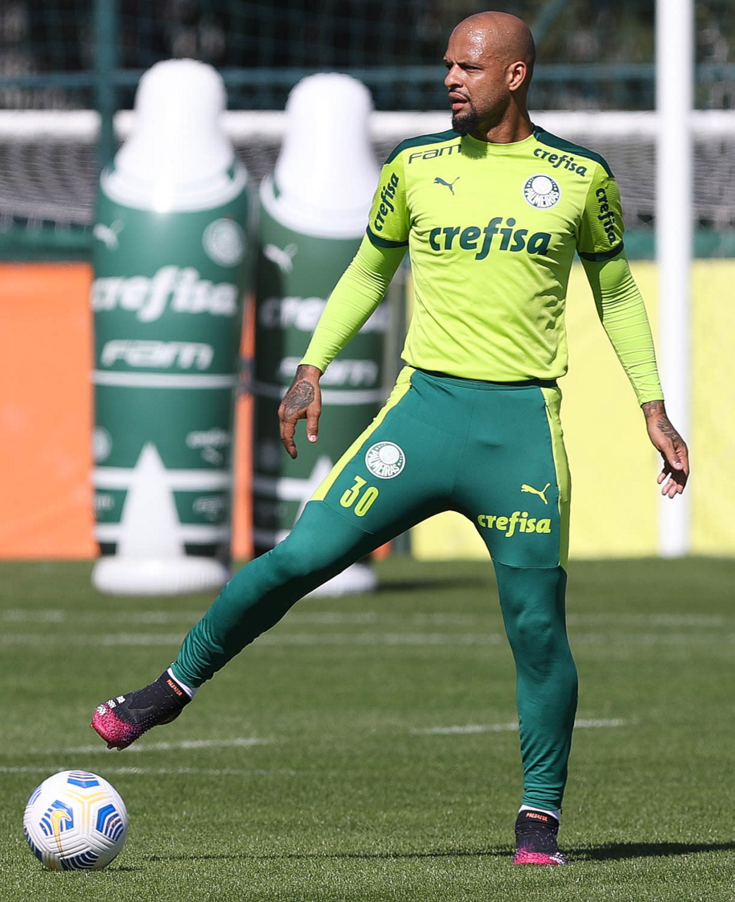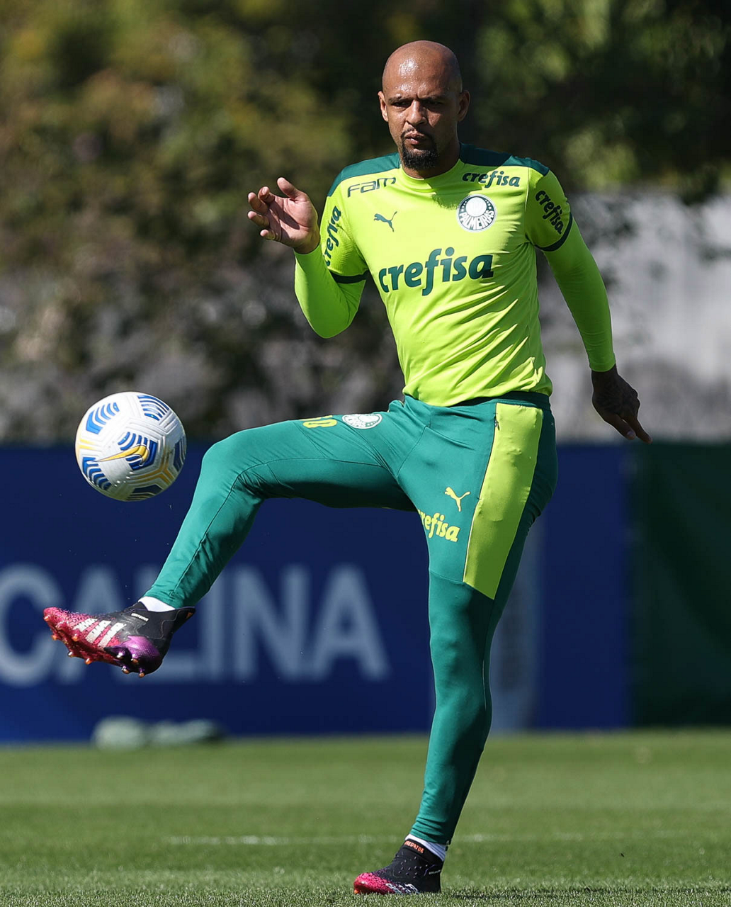 O jogador Felipe Melo, da SE Palmeiras, durante treinamento, na Academia de Futebol. (Foto: Cesar Greco)