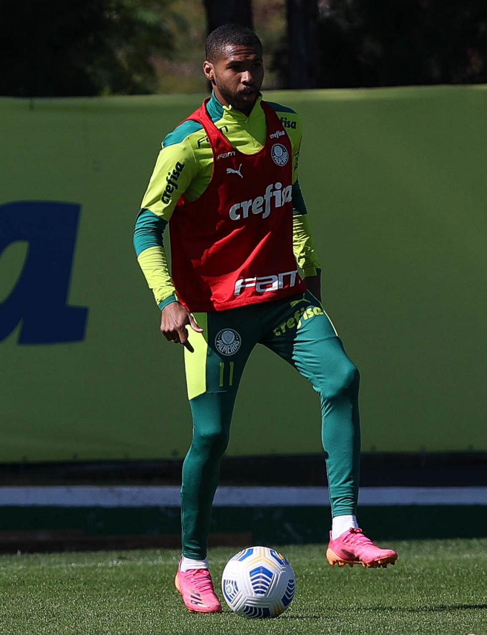 O jogador Deyverson, da SE Palmeiras, durante treinamento, na Academia de Futebol. (Foto: Cesar Greco)