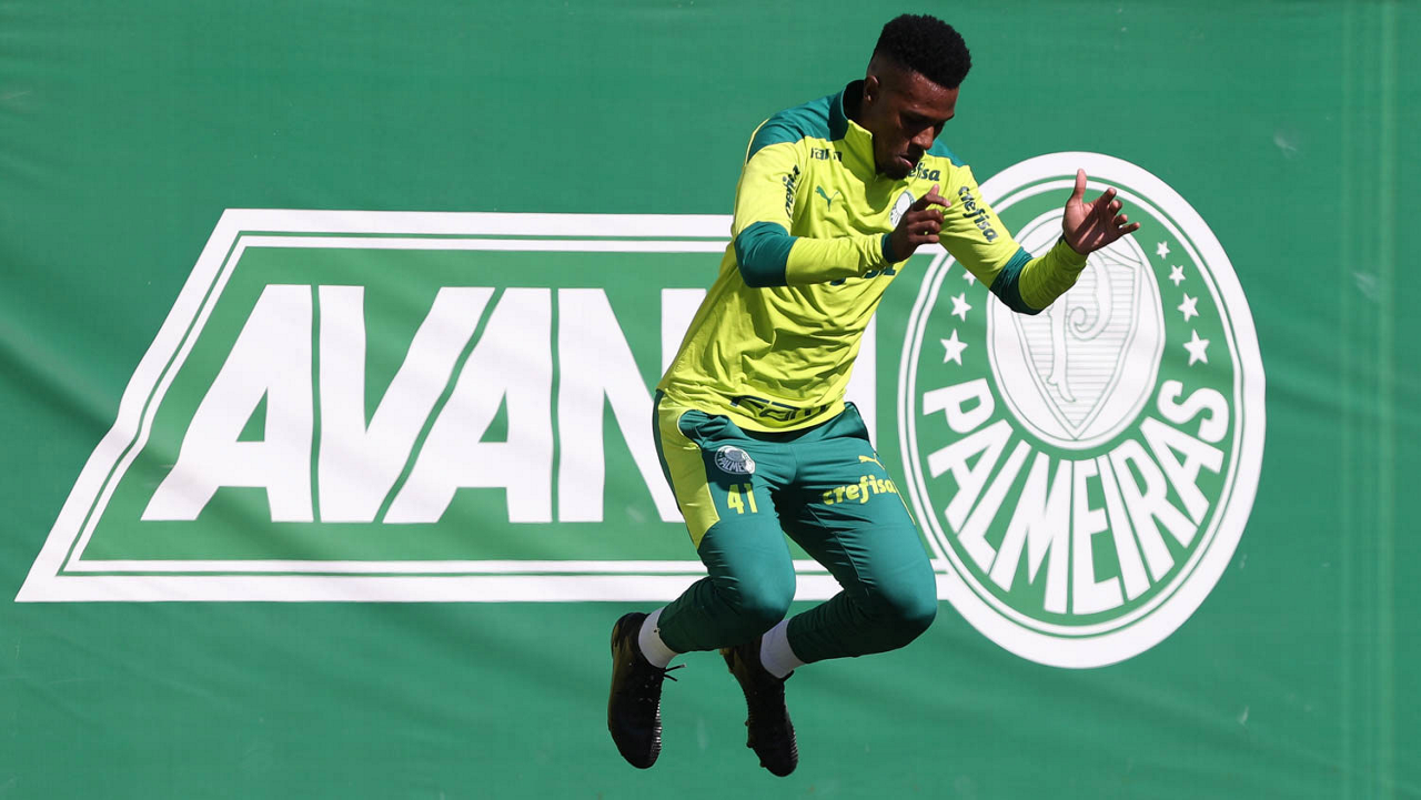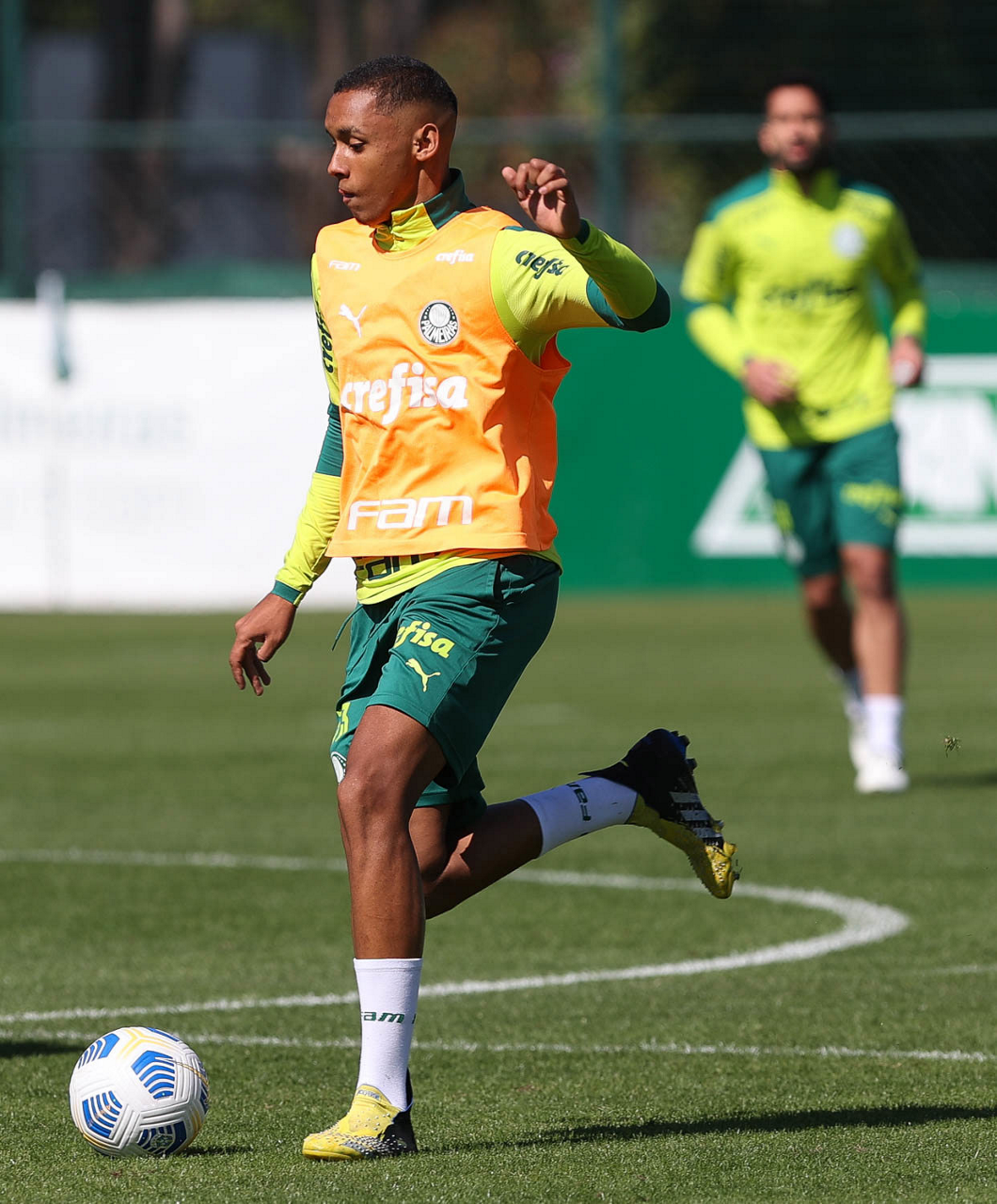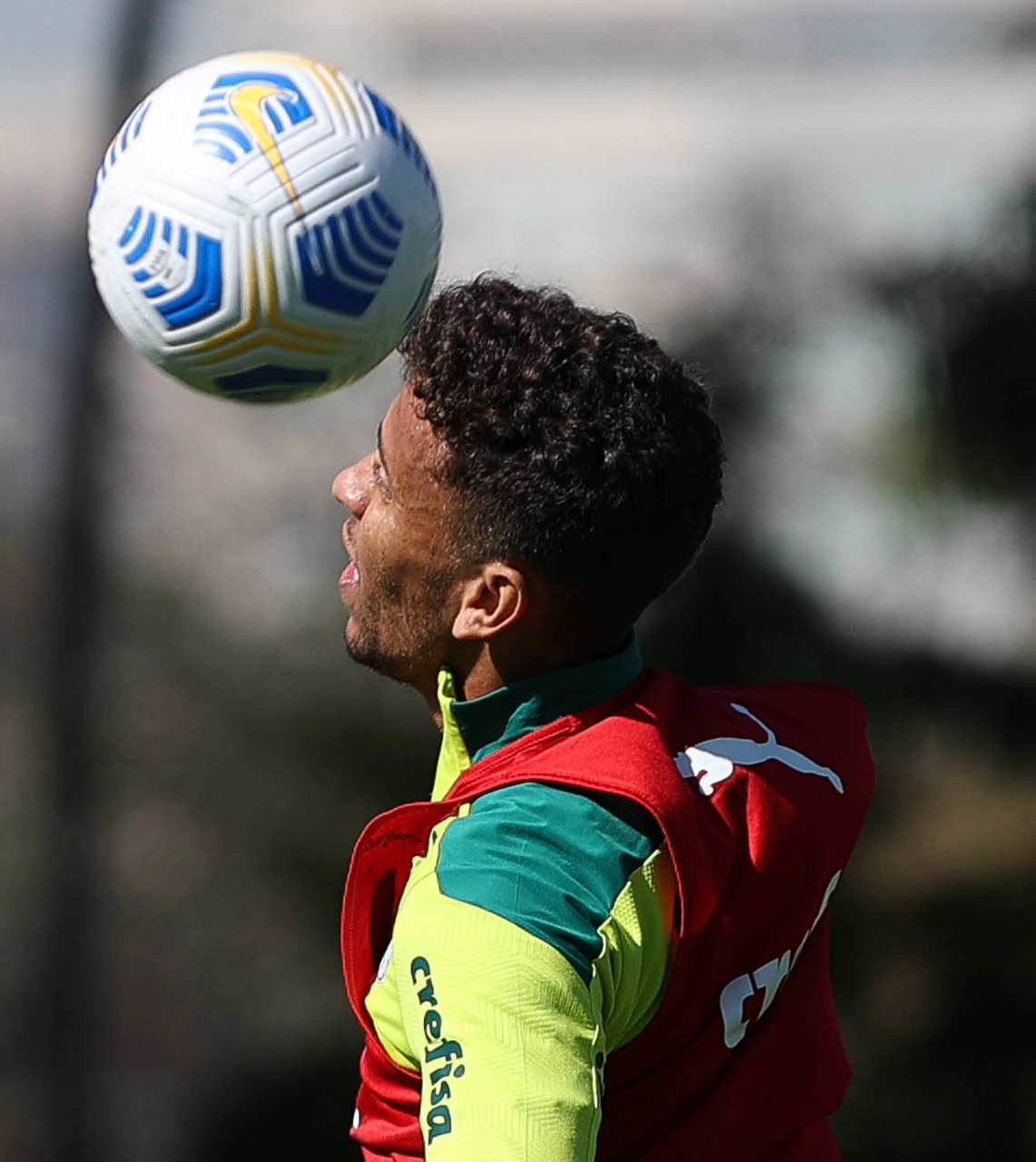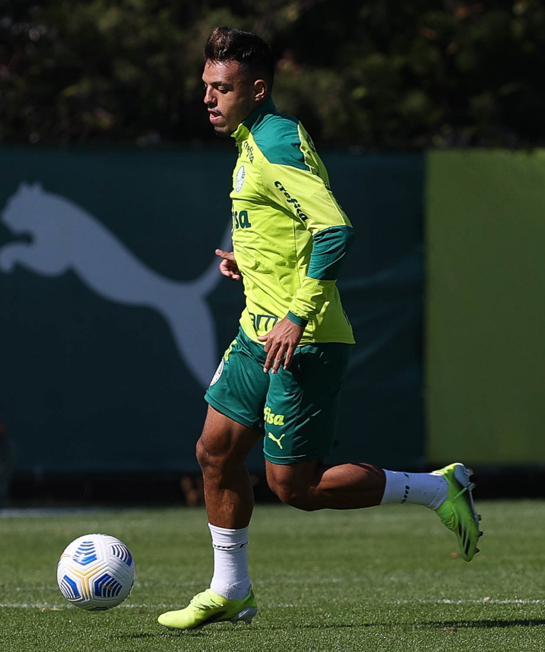 O jogador Gabriel Menino, da SE Palmeiras, durante treinamento, na Academia de Futebol. (Foto: Cesar Greco)