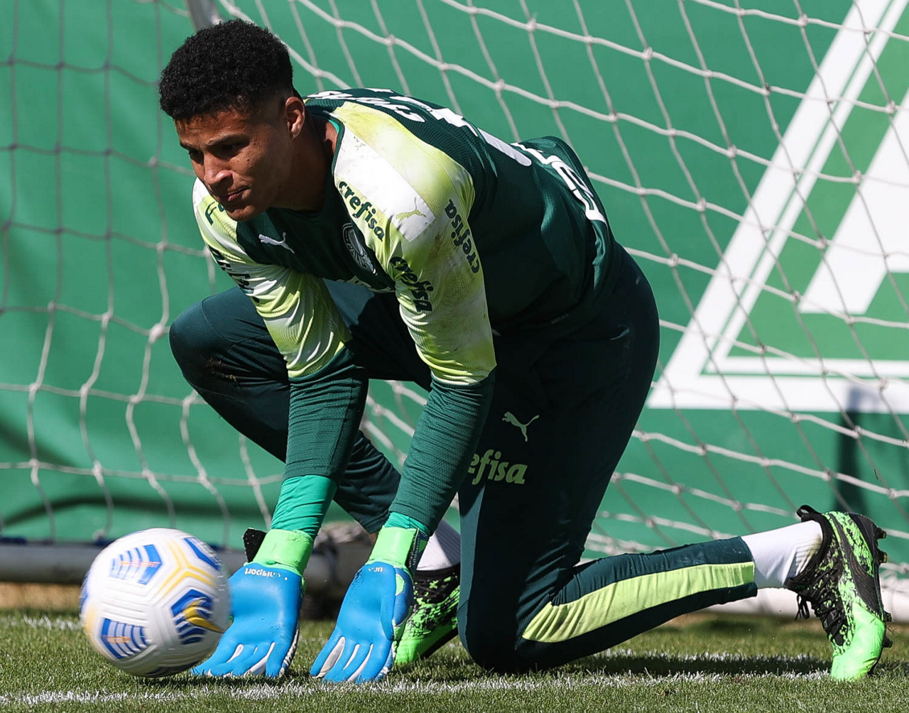 O goleiro Vinicius, da SE Palmeiras, durante treinamento, na Academia de Futebol. (Foto: Cesar Greco)