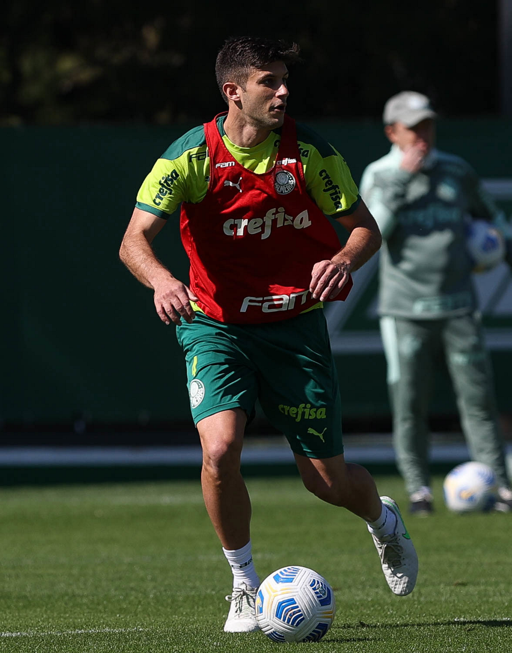 O jogador Benjamín Kuscevic, da SE Palmeiras, durante treinamento, na Academia de Futebol. (Foto: Cesar Greco)