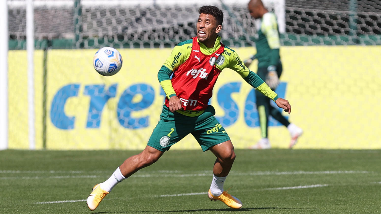 O jogador Marcos Rocha, da SE Palmeiras, durante treinamento, na Academia de Futebol. (Foto: Cesar Greco)