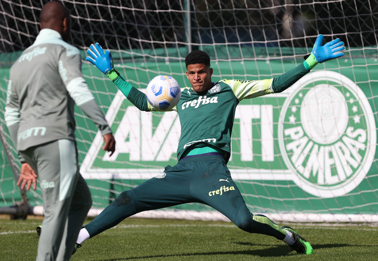 O goleiro Natan, da SE Palmeiras, durante treinamento, na Academia de Futebol. (Foto: Cesar Greco)