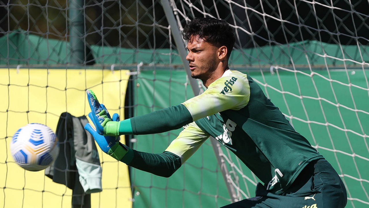 O goleiro Mateus, da SE Palmeiras, durante treinamento, na Academia de Futebol. (Foto: Cesar Greco)
