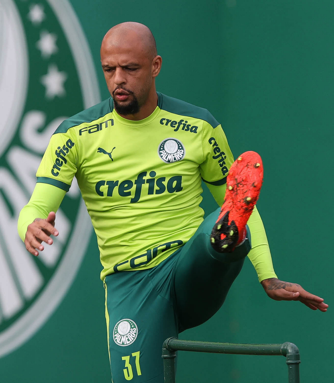 O jogador Felipe Melo, da SE Palmeiras, durante treinamento, na Academia de Futebol. (Foto: Cesar Greco)