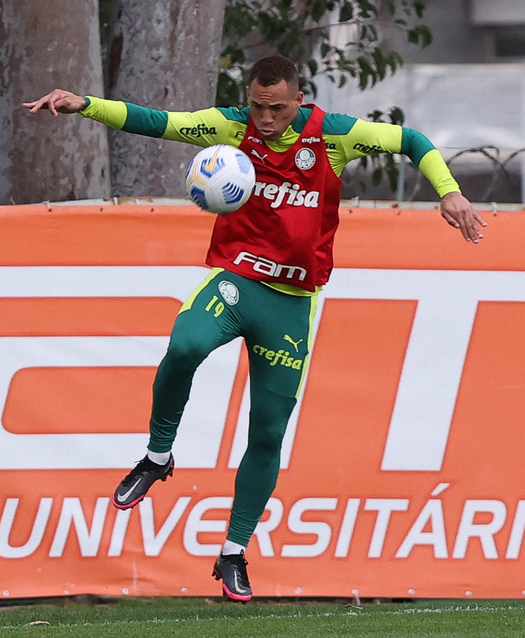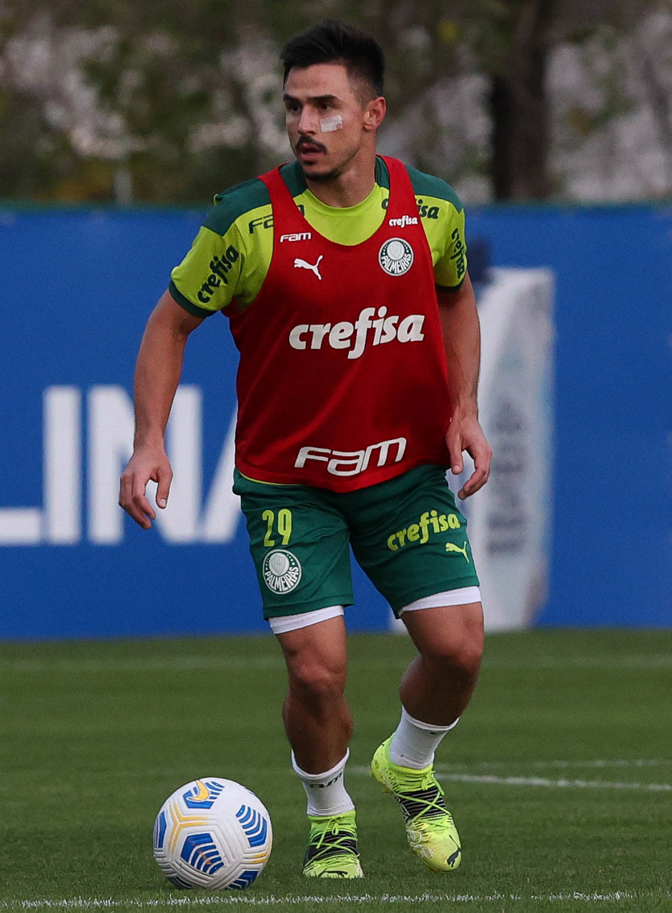 O jogador Raphael Veiga, da SE Palmeiras, durante treinamento, na Academia de Futebol. (Foto: Cesar Greco)
