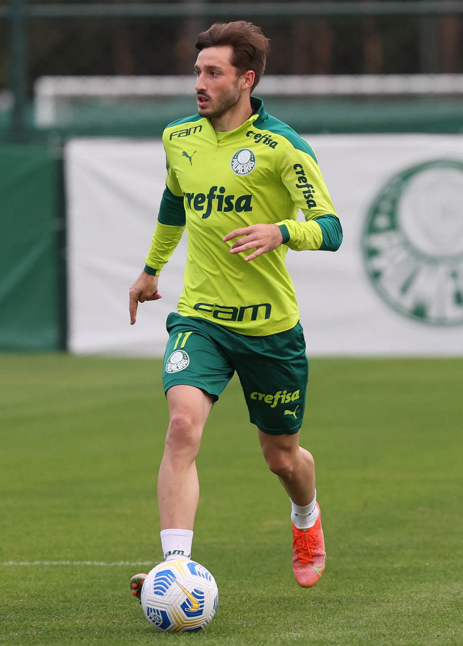 O jogador Gustavo Scarpa, da SE Palmeiras, durante treinamento, na Academia de Futebol. (Foto: Cesar Greco)