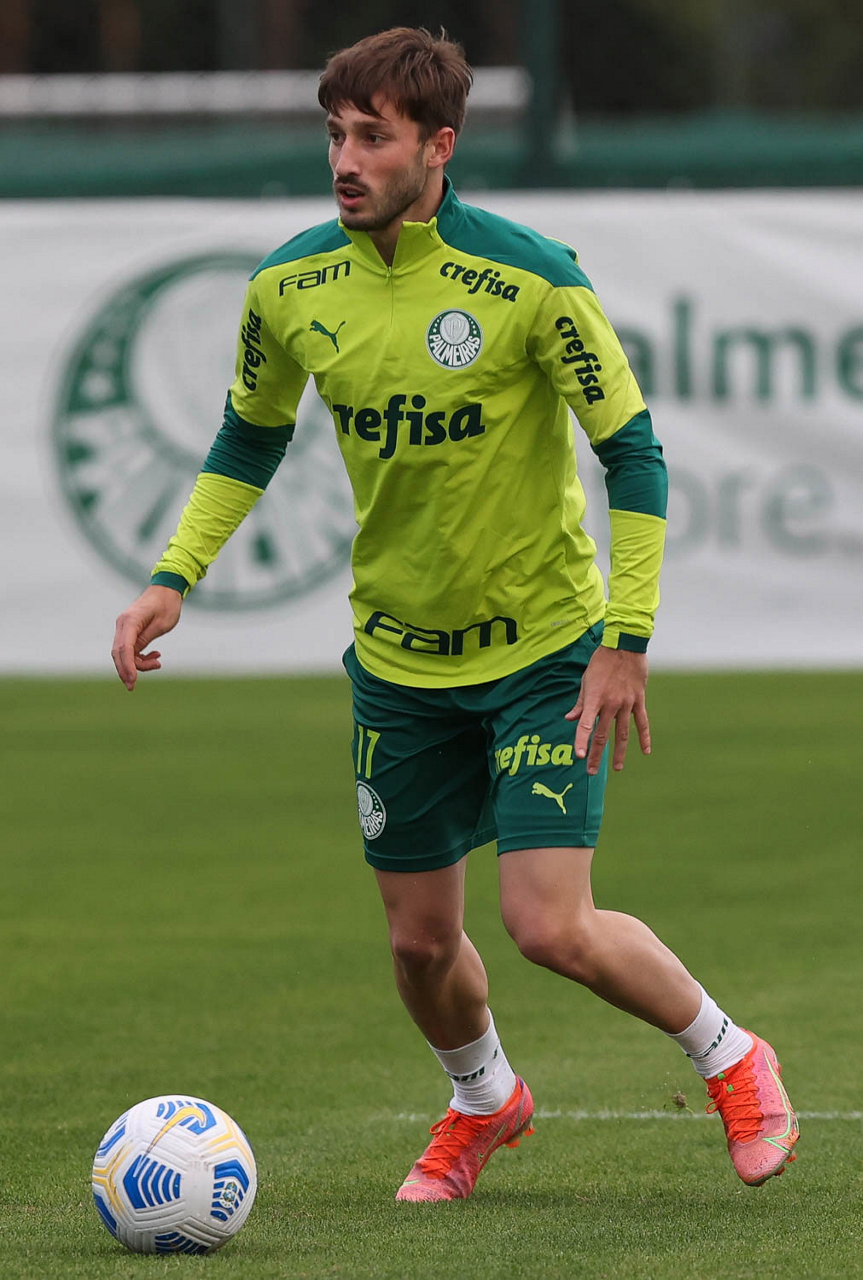 O jogador Benjamín Kuscevic, da SE Palmeiras, durante treinamento, na Academia de Futebol. (Foto: Cesar Greco)