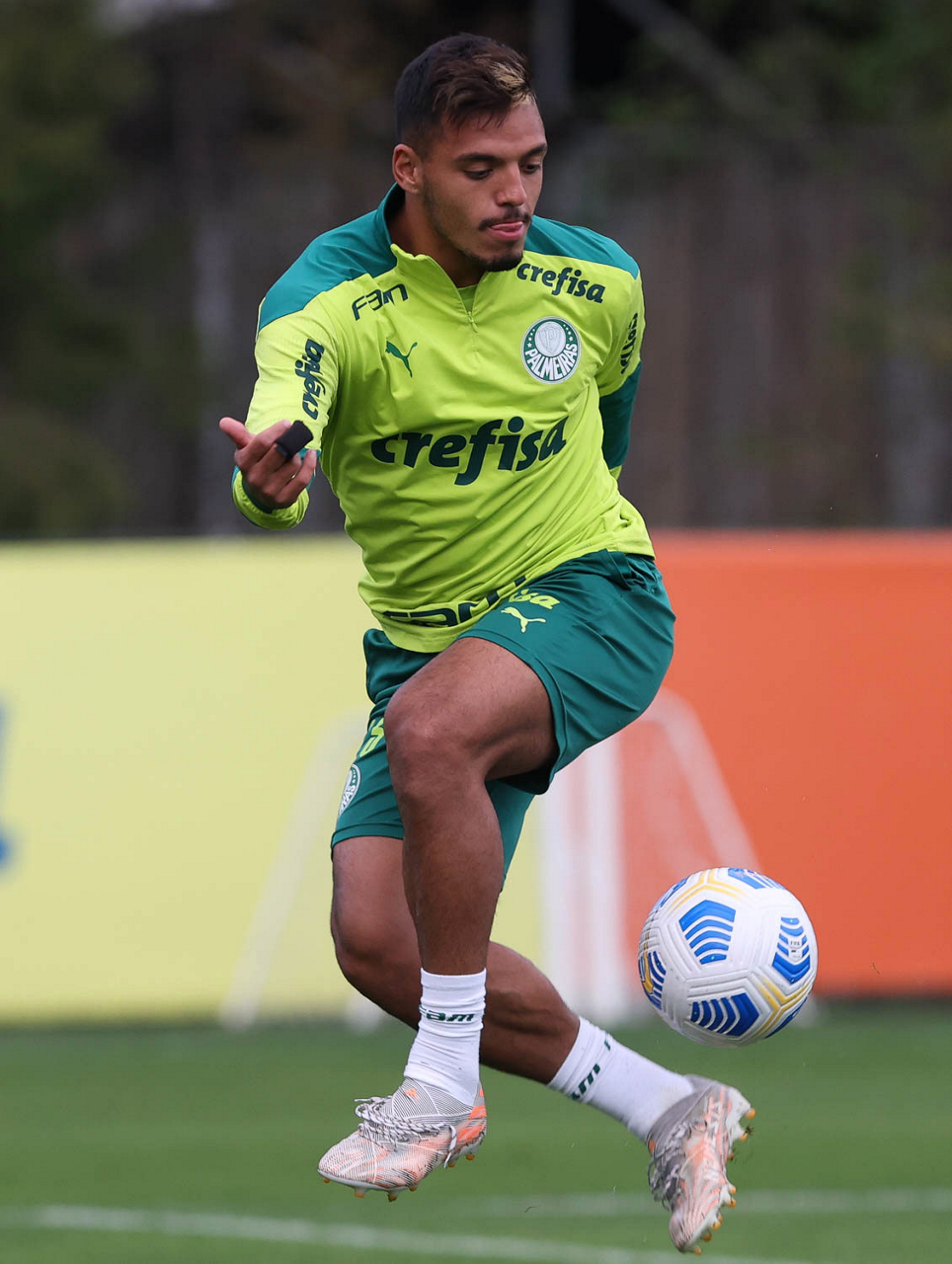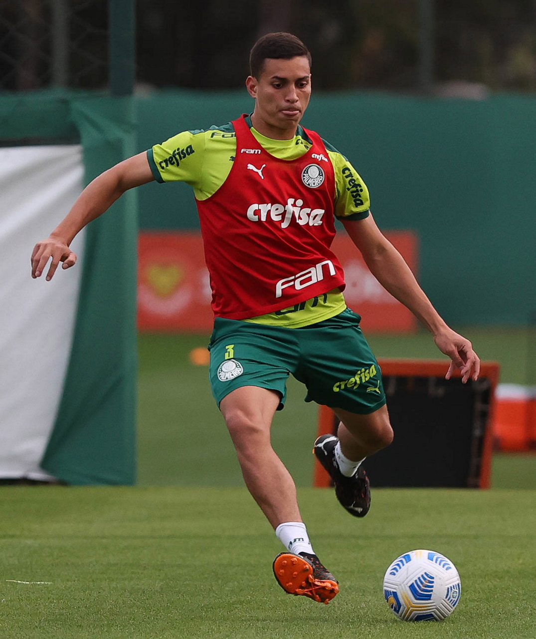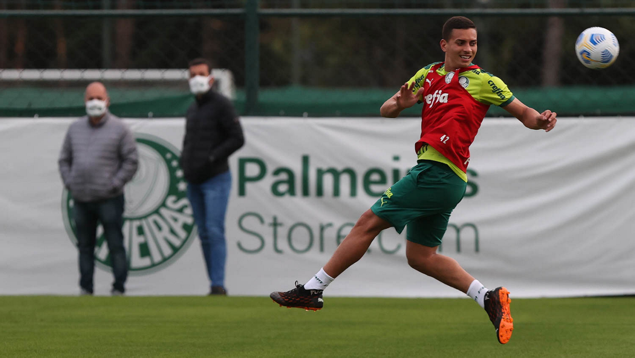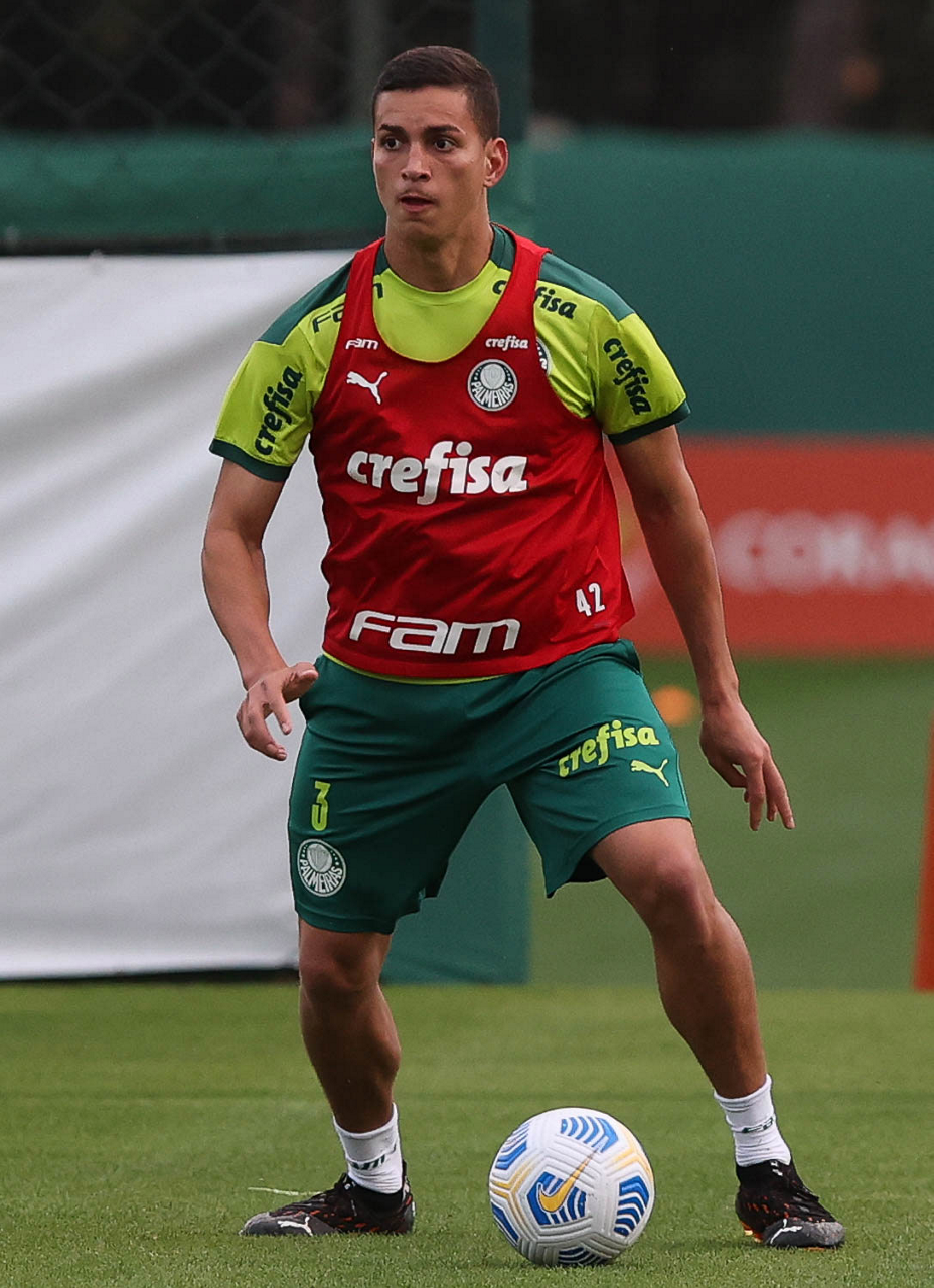 O jogador Gabriel Menino, da SE Palmeiras, durante treinamento, na Academia de Futebol. (Foto: Cesar Greco)