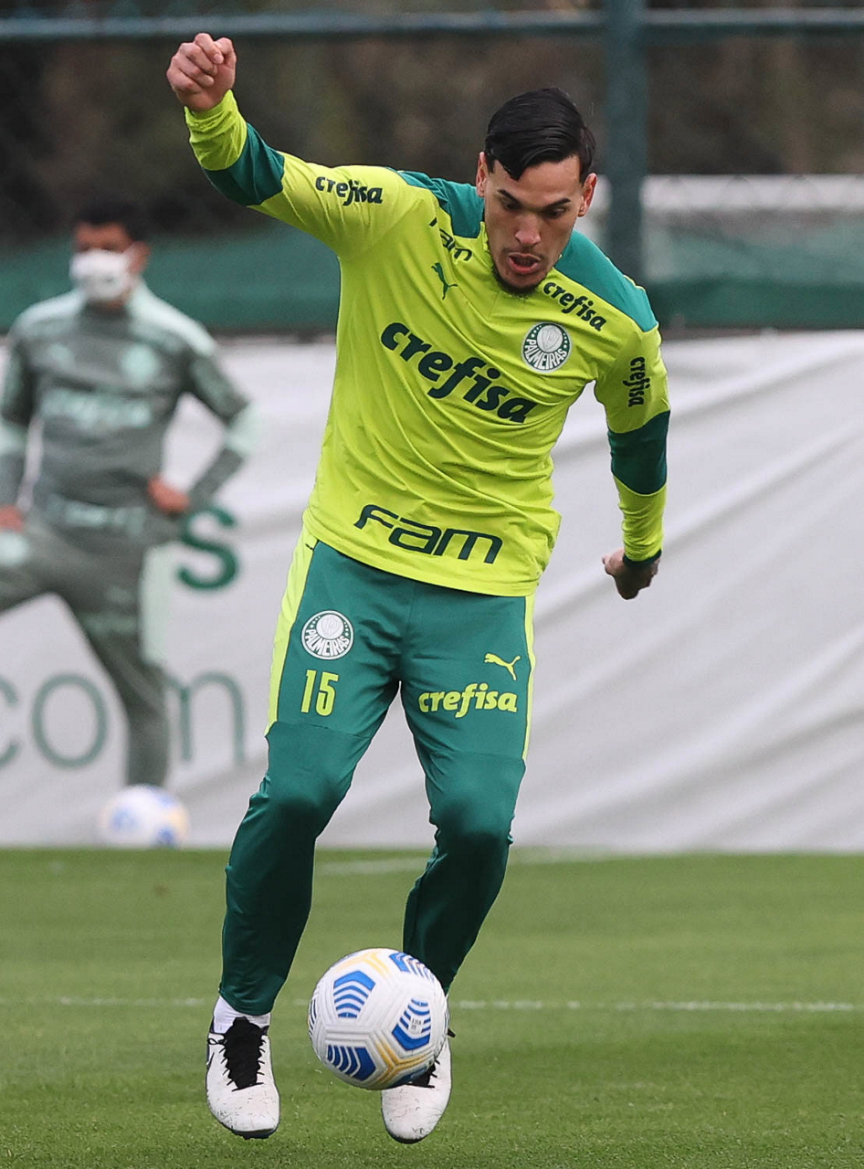 O jogador Gustavo Gómez, da SE Palmeiras, durante treinamento, na Academia de Futebol. (Foto: Cesar Greco)